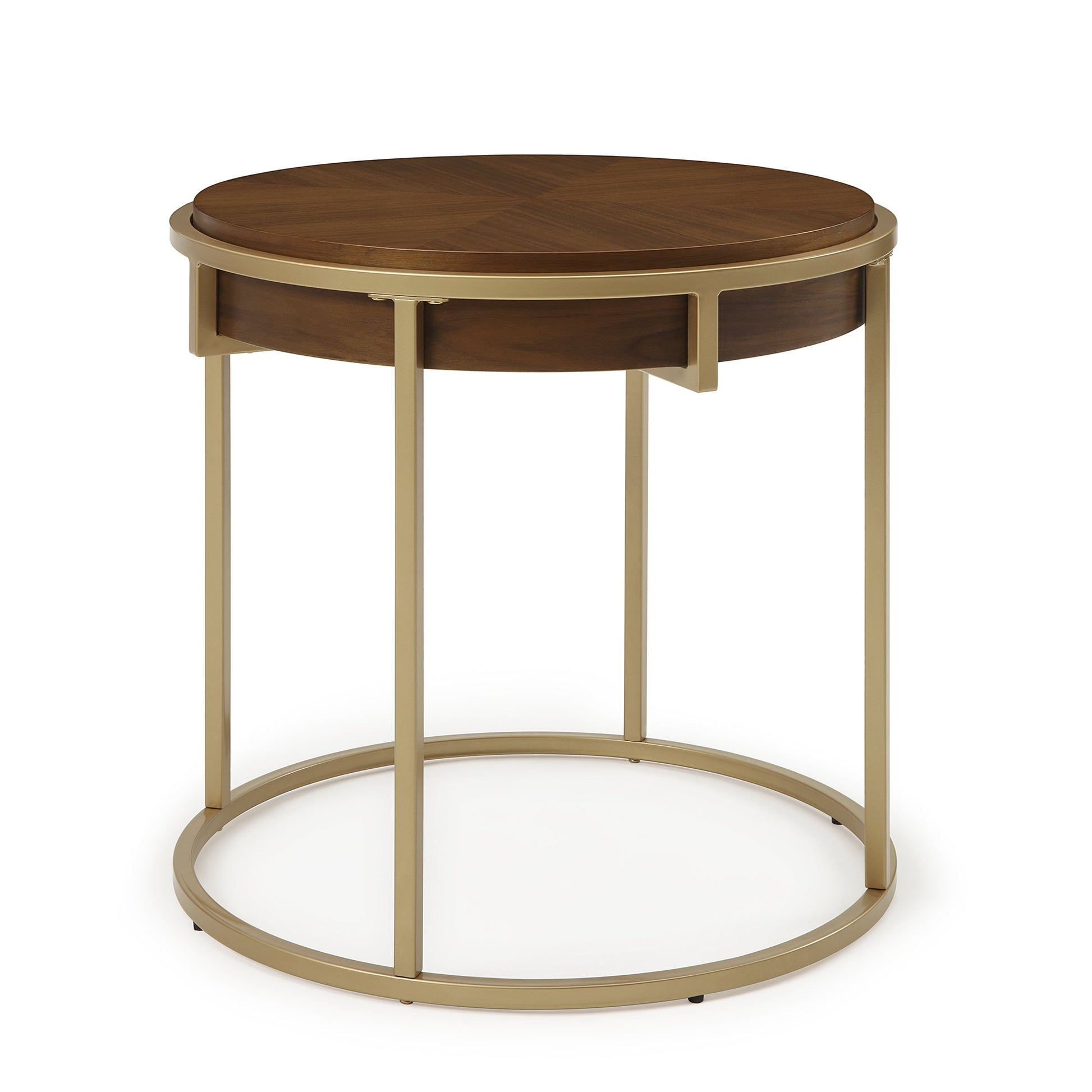 Color: Brown wood top, brushed gold metal base