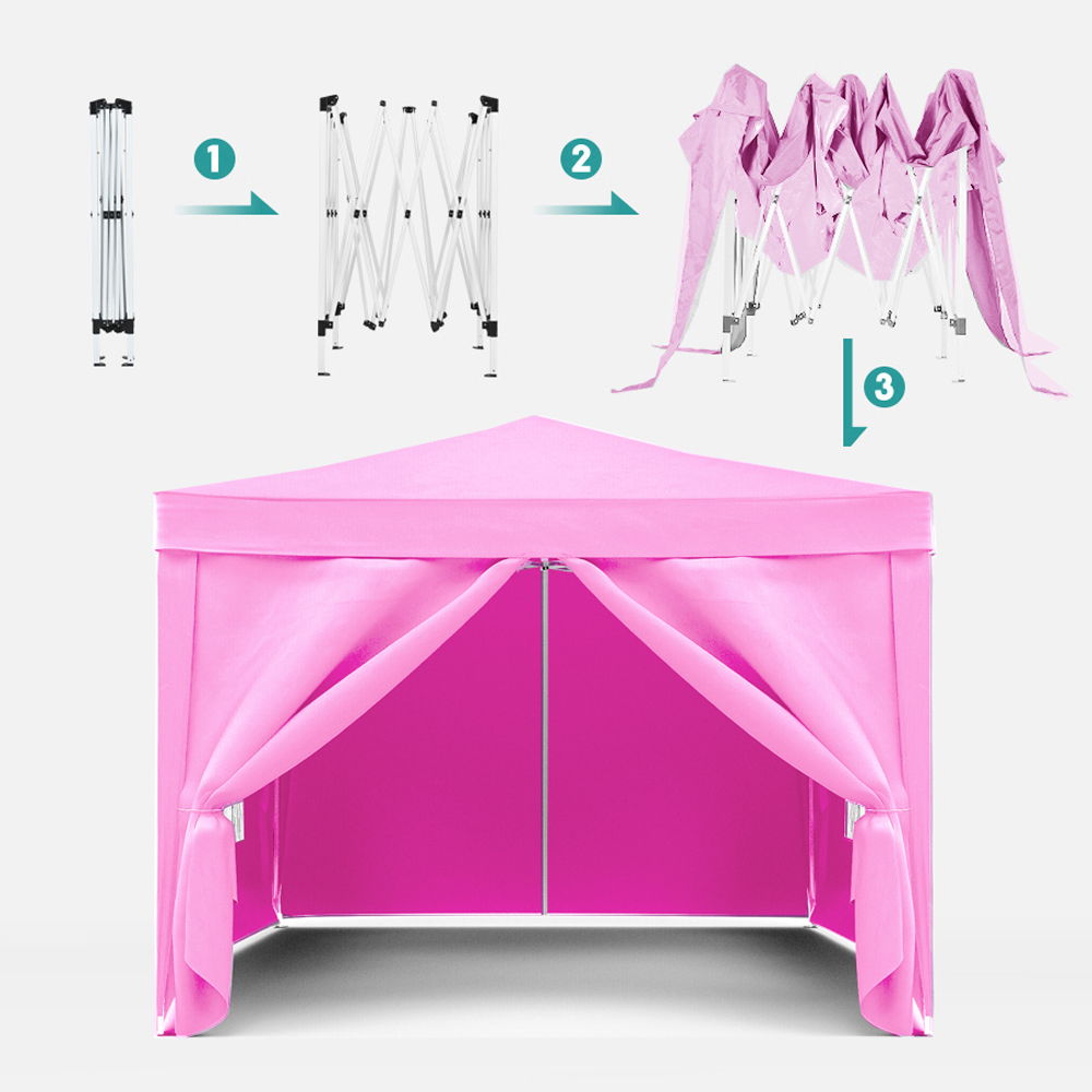 10'X10' Folding Canopy With 4 Removable Sidewalls Outdoor Event Shelter UPF 50+ Gazebo Portable Tents For Parties Beach Camping Wedding Ez Pop Up Canopy 4 Pieces Weight Bag + Carry Bag - Pink