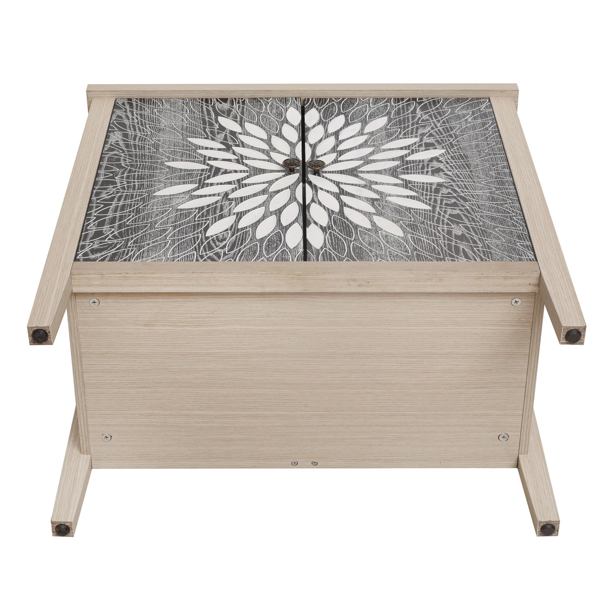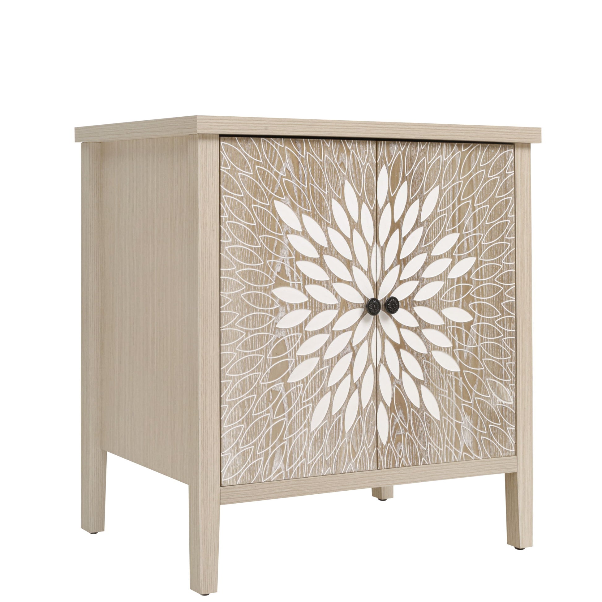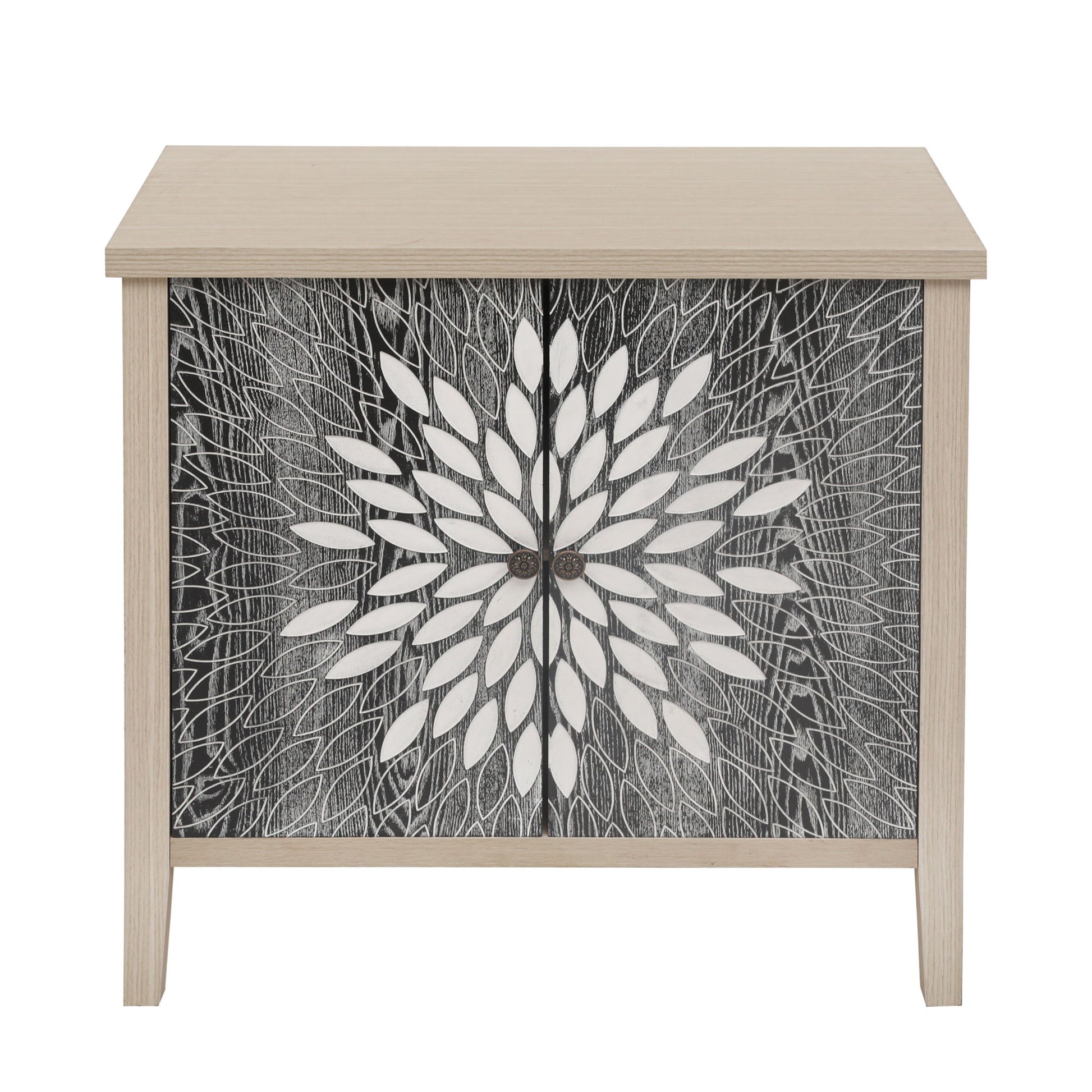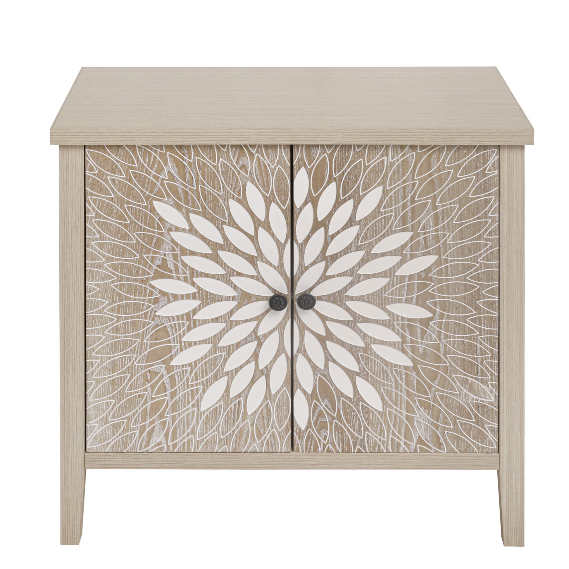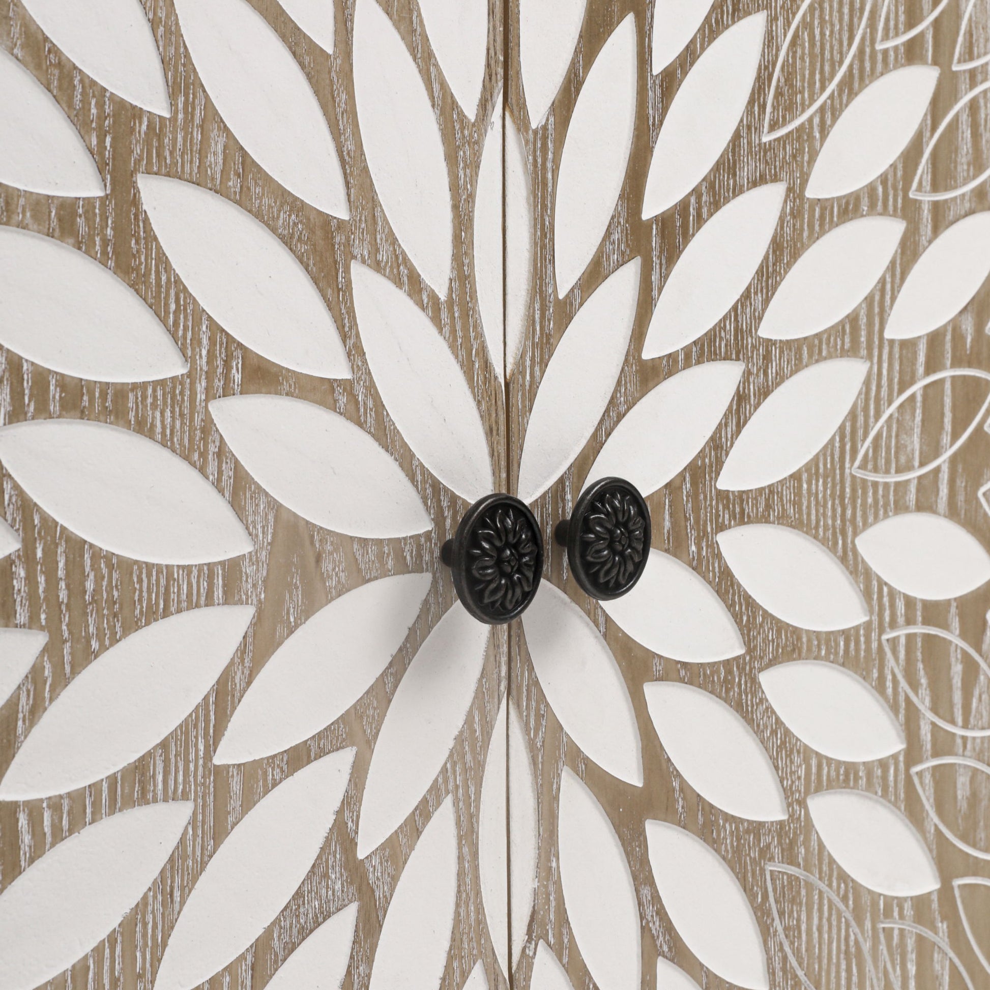 2 Door Carved Storage Cabinet With Adjustable Shelf, Accent Furniture For Living Room, Hallway, Kitchen - Natural
