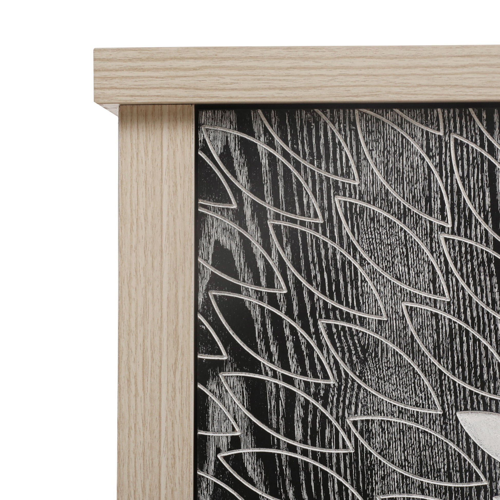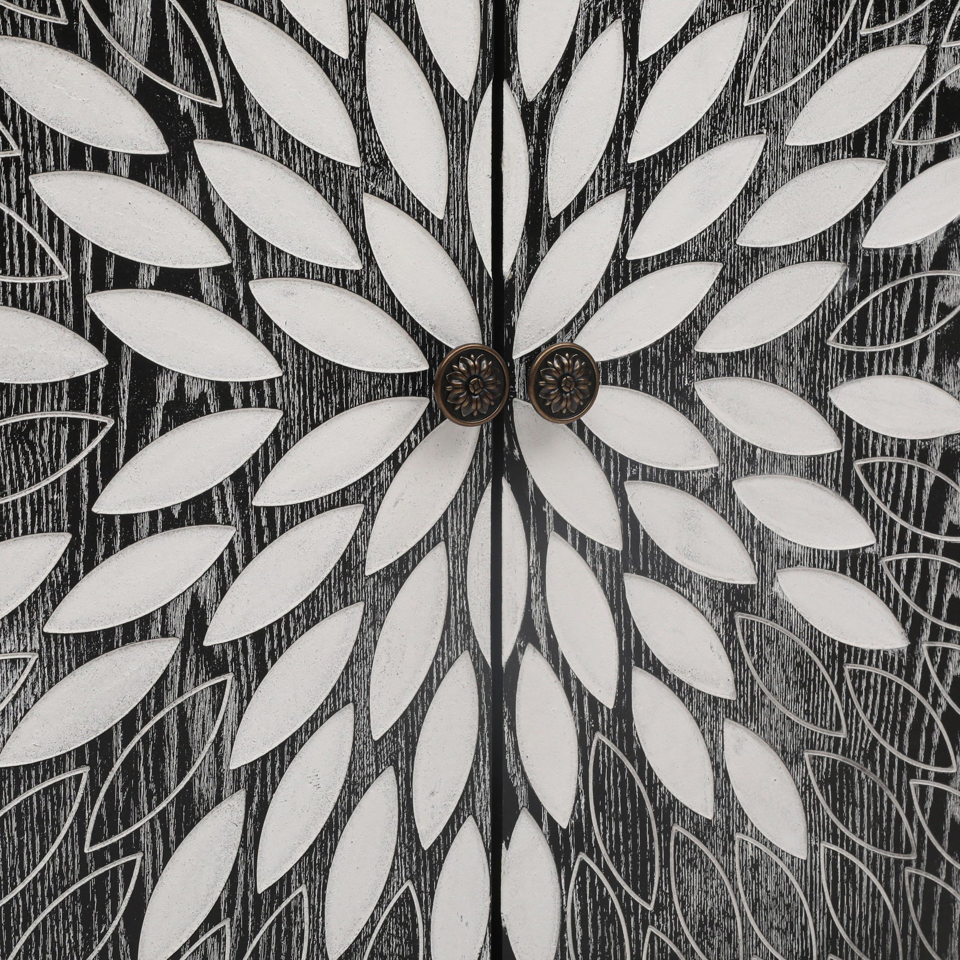 2 Door Carved Storage Cabinet With Adjustable Shelf, Accent Furniture For Living Room, Hallway, Kitchen - Black / Natural