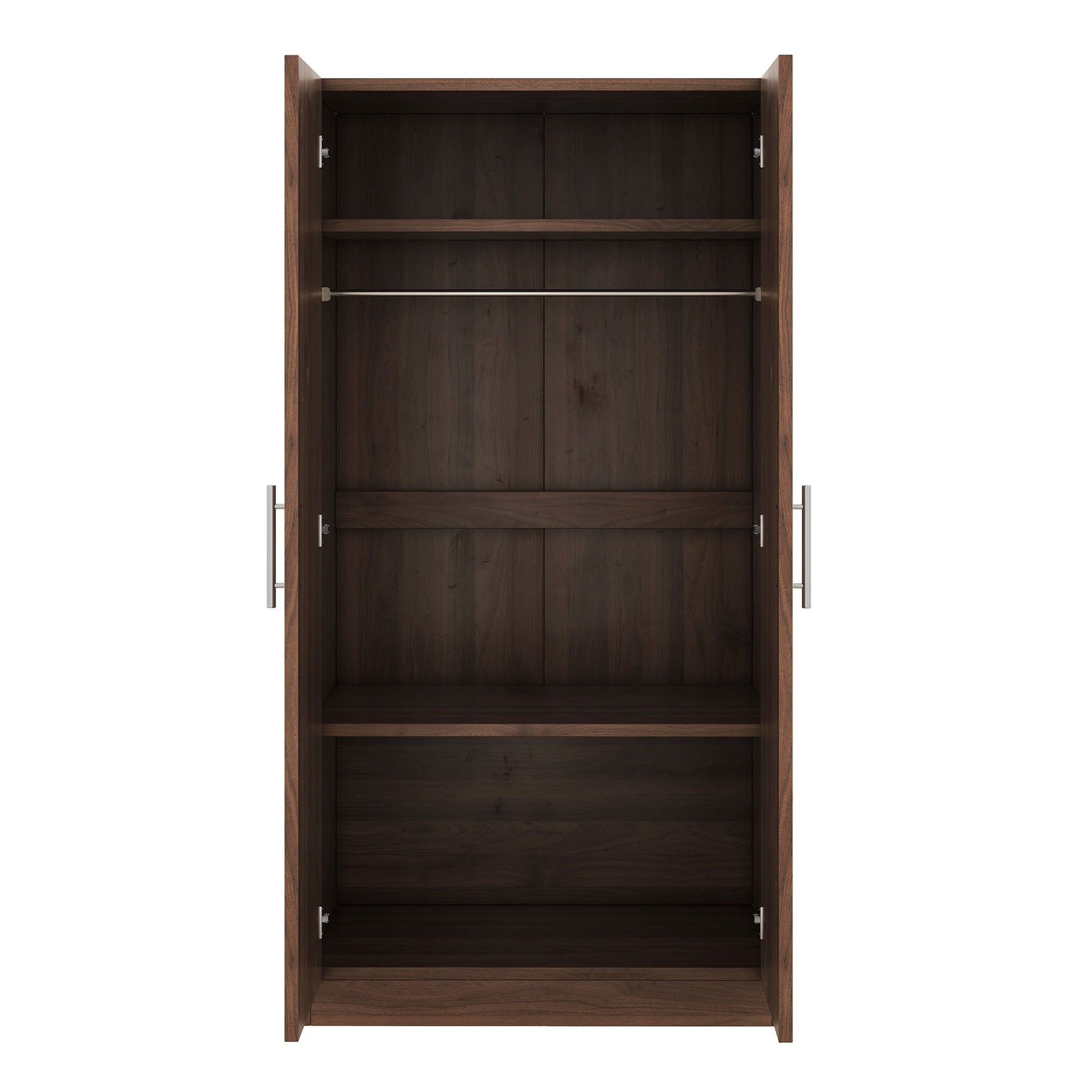 2 Door Wooden Wardrobe Armoire With 3 Storage Shelves - Brown
