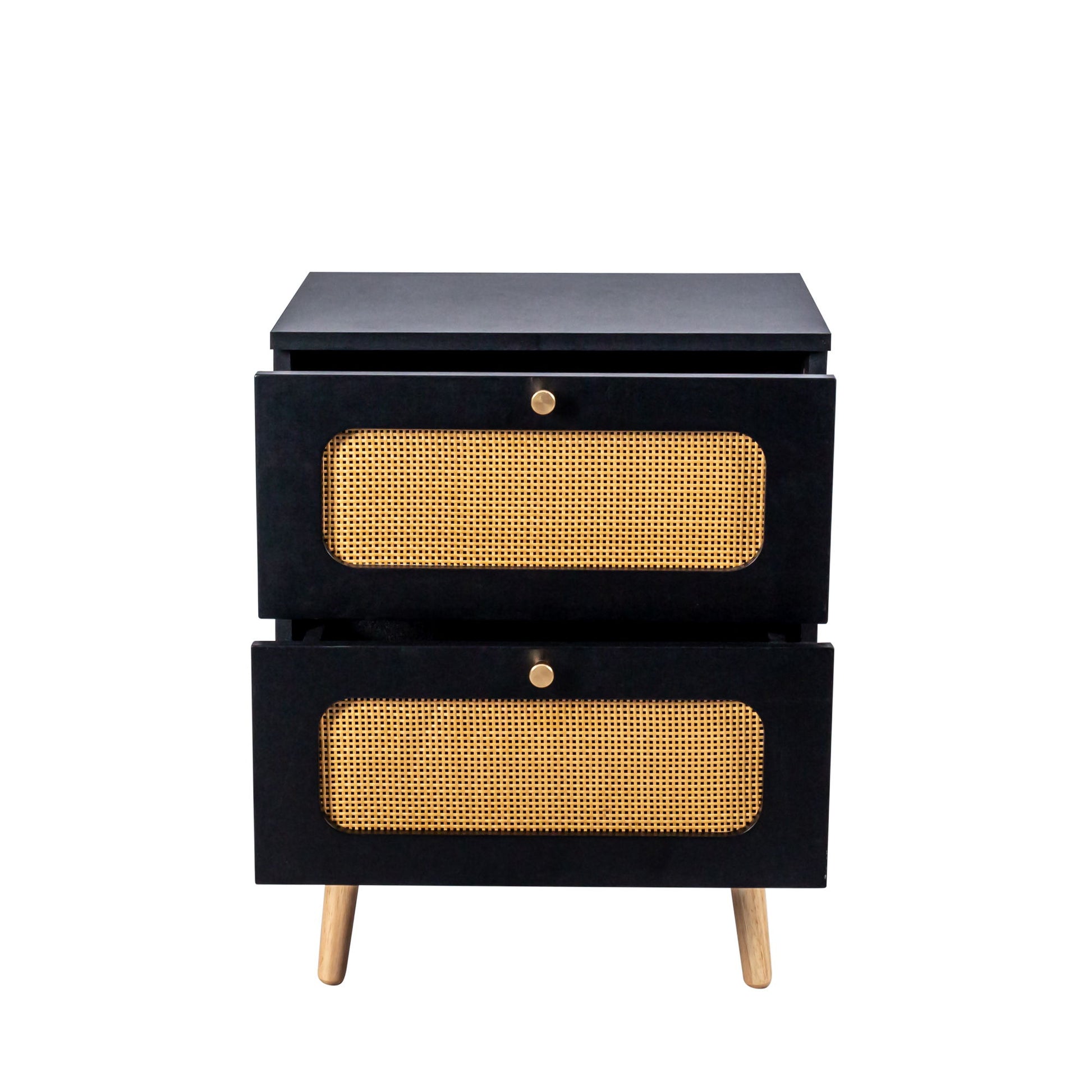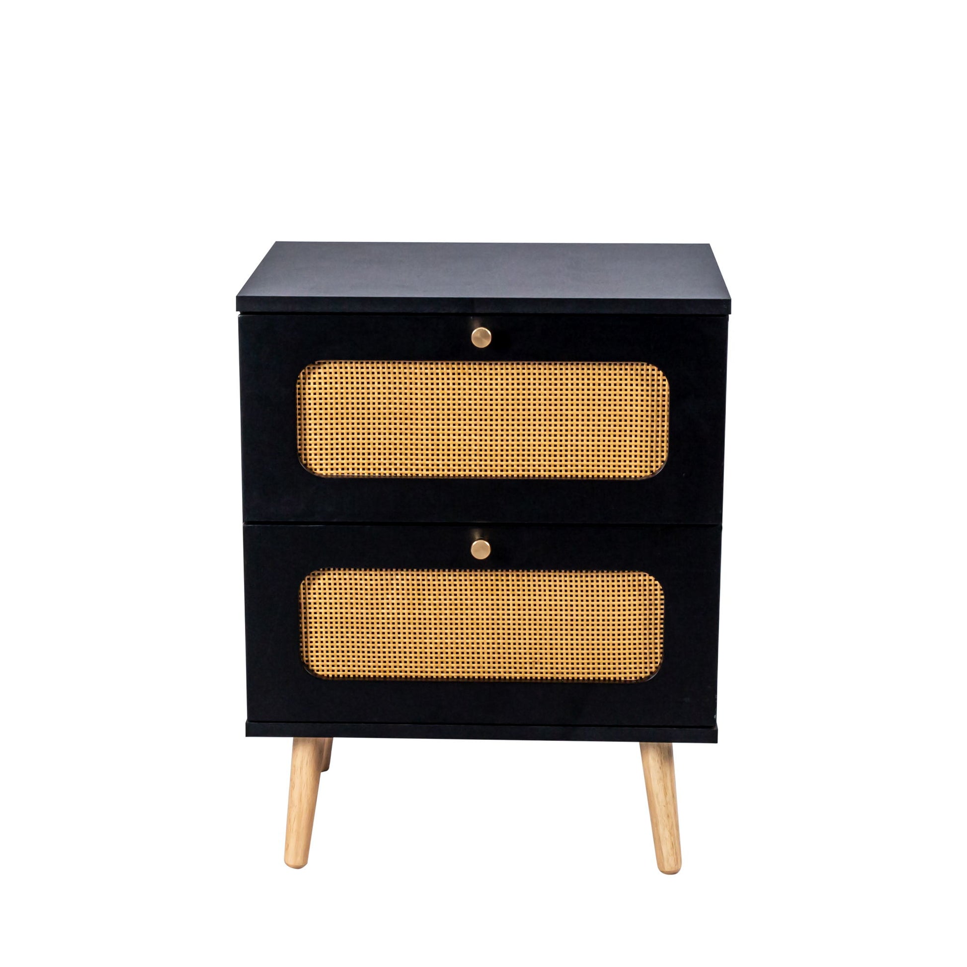 2 Drawer Rattan Nightstand For Bedroom And Living Room, End Table, Side Table With 2 Hand Made Rattan Decorated Drawers - Black