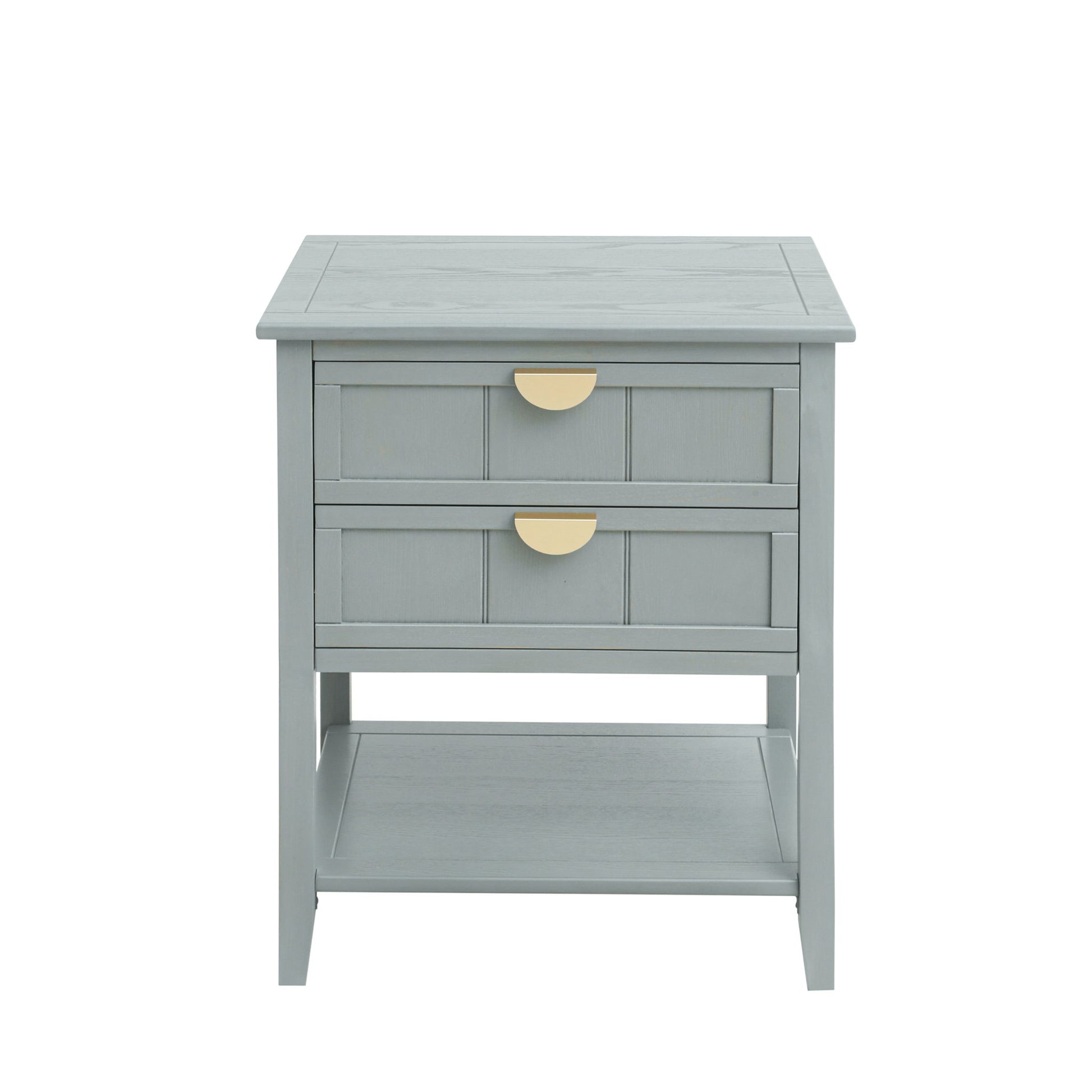 2 Drawer Side Table, American Style, End Table, Suitable For Bedroom, Living Room, Study - Light Gray