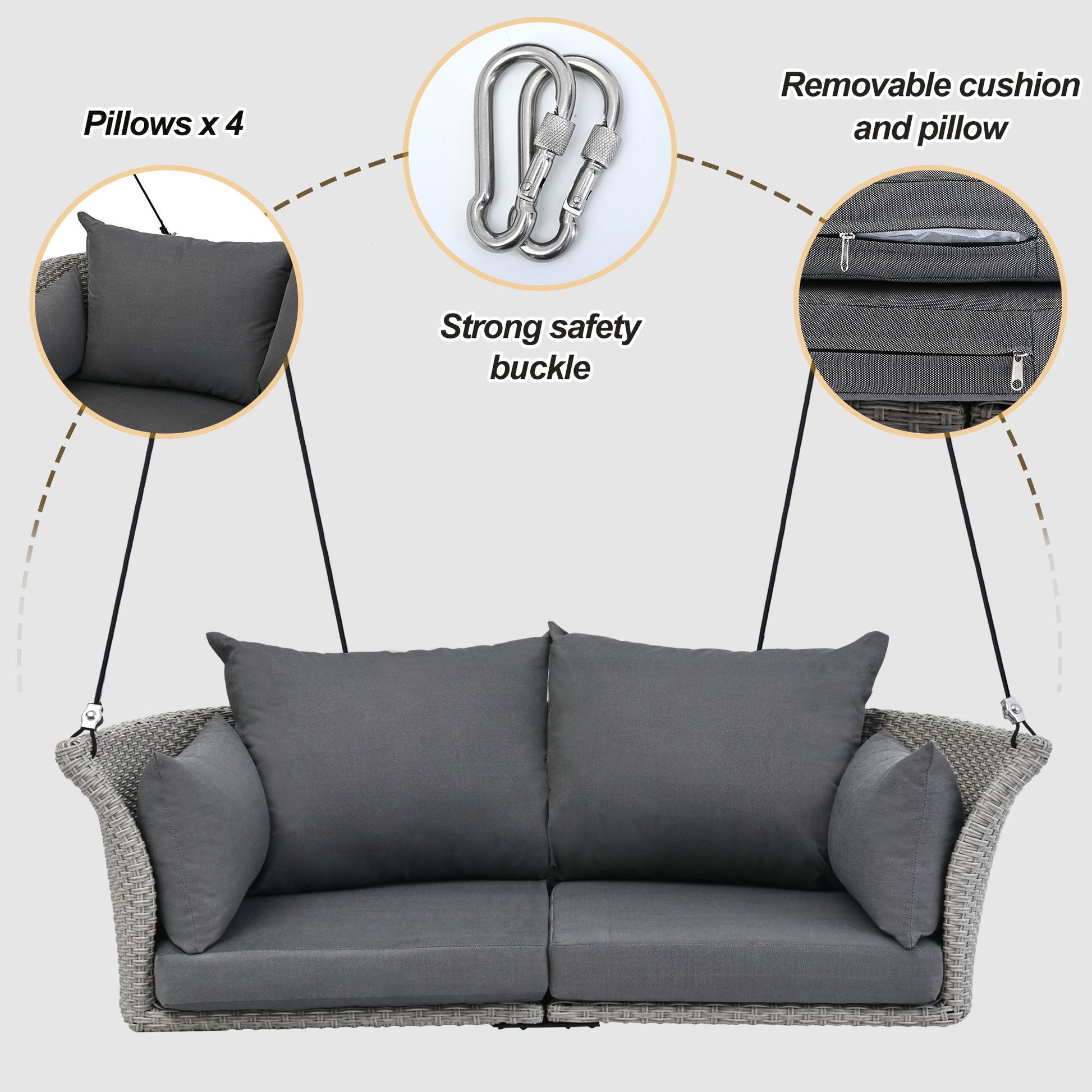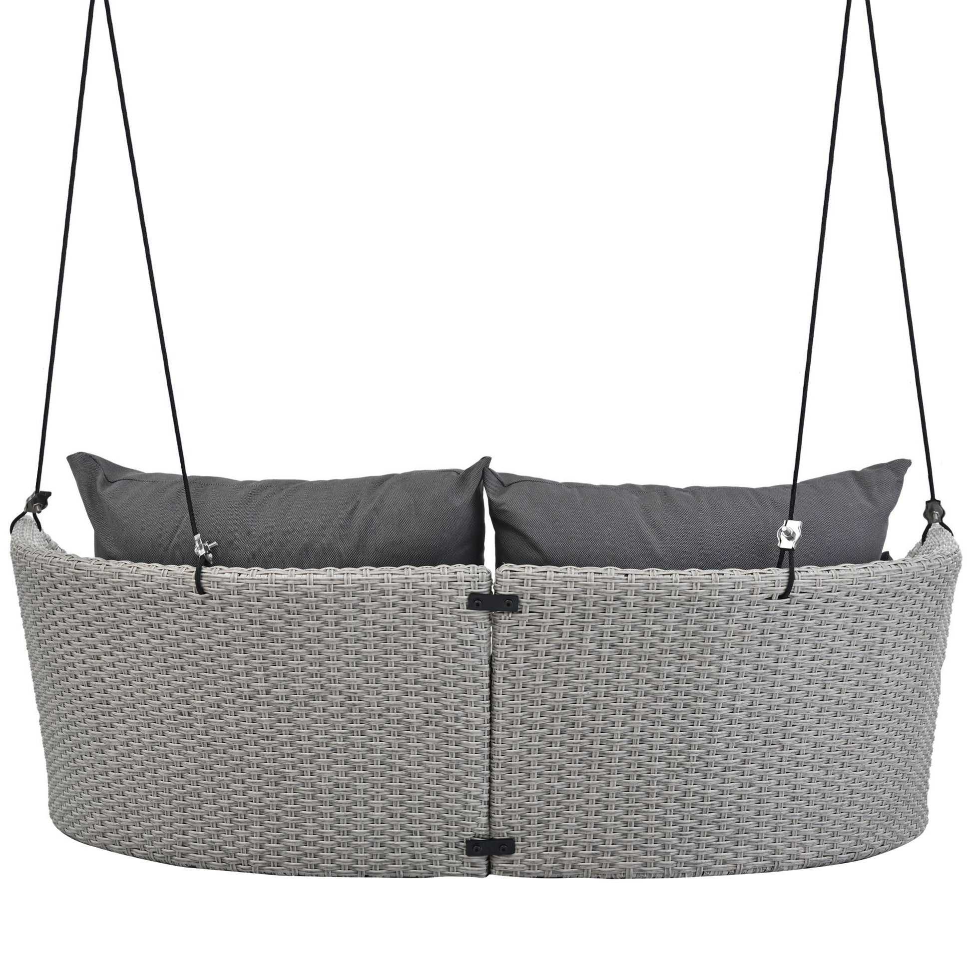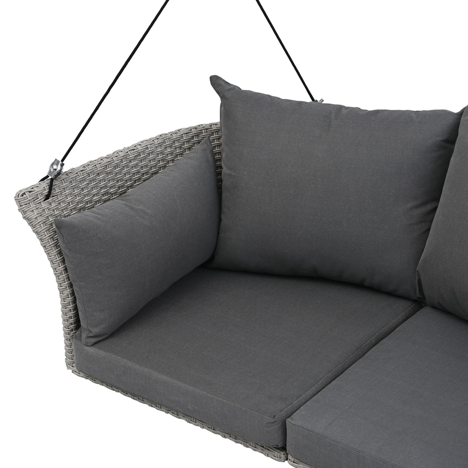 2 Person Hanging Seat, Rattan Woven Swing Chair, Porch Swing With Ropes - Gray / Cushion