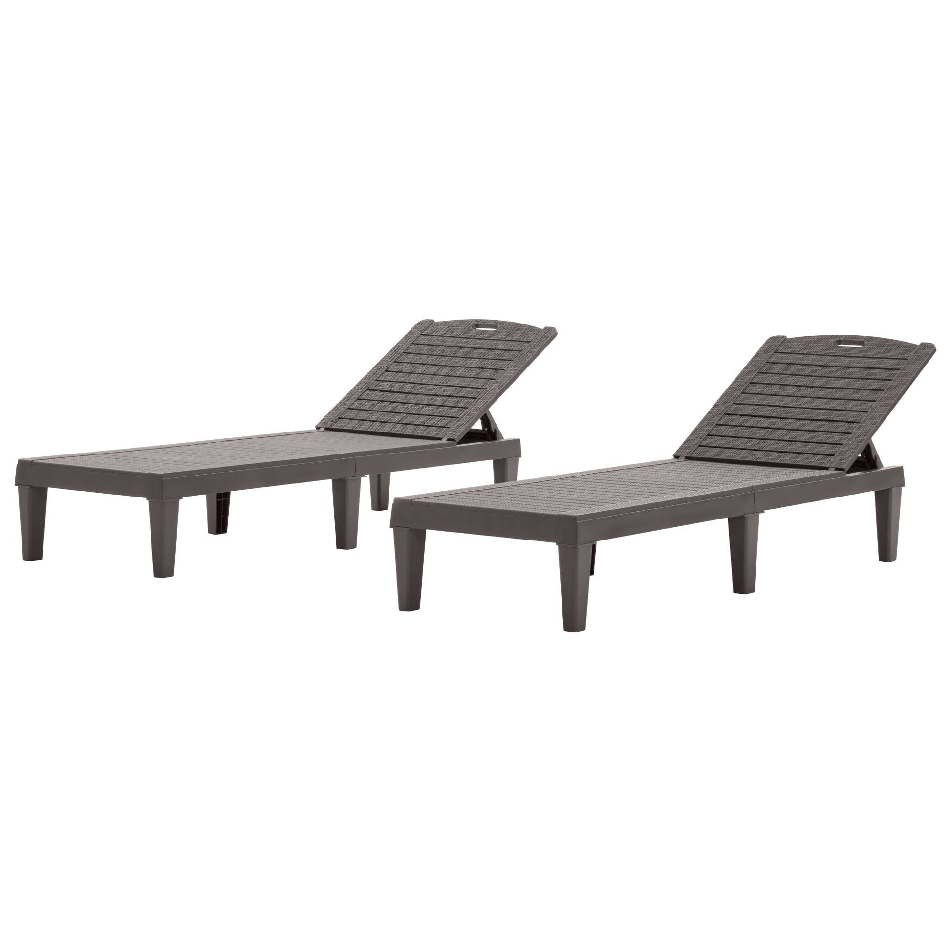 2 Piece Outdoor Chaise Lounges With Adjustable Backrest, Polypropylene - Dark Brown