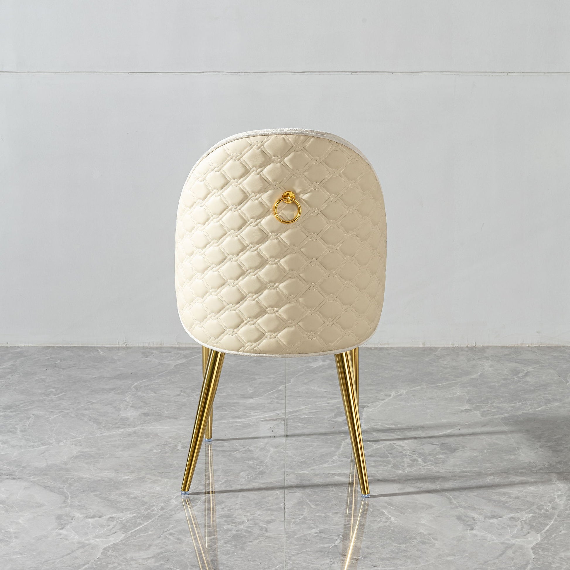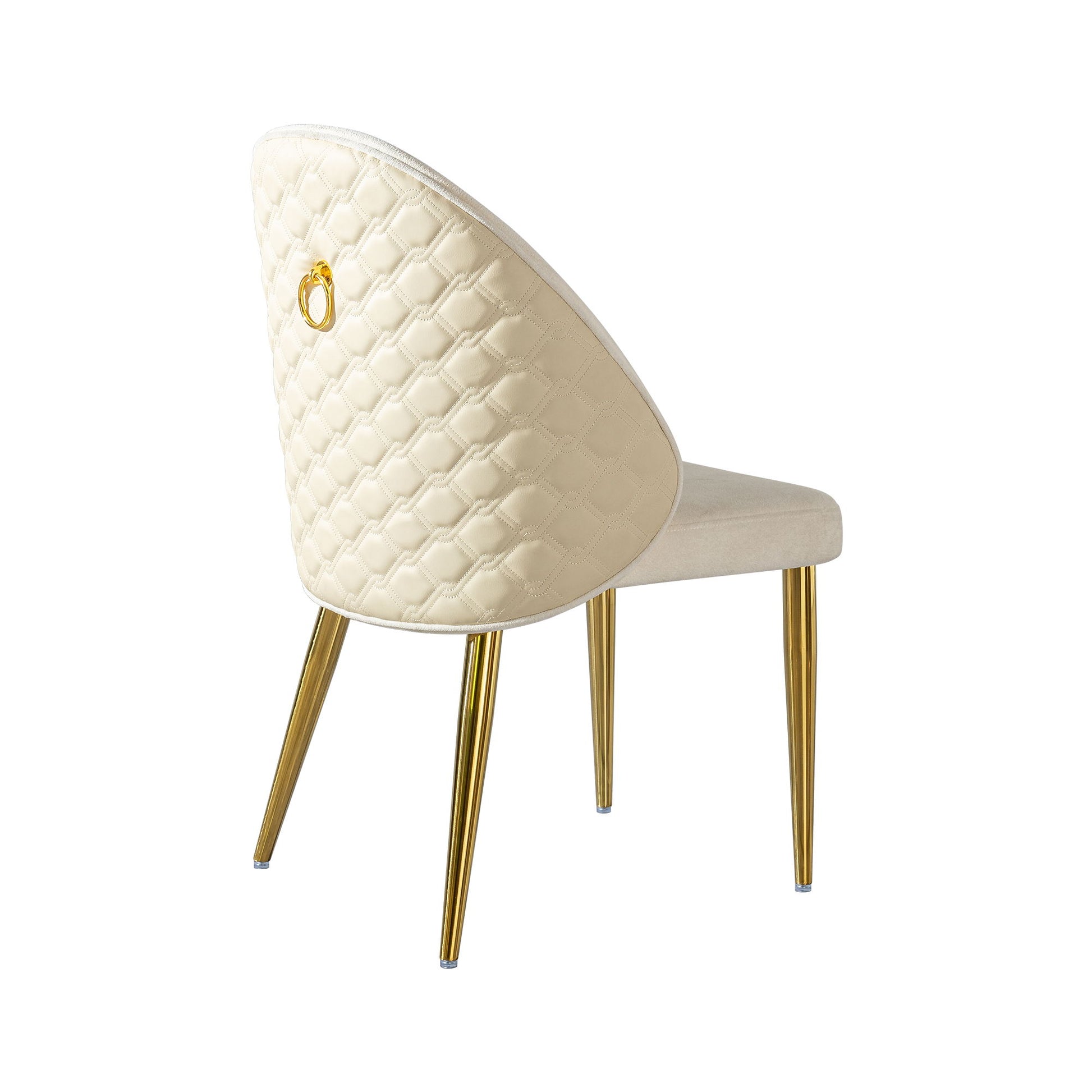 2 Pieces Contemporary Stainless Steel Dining Chair With Upholstery And Leather Backrest - Gold