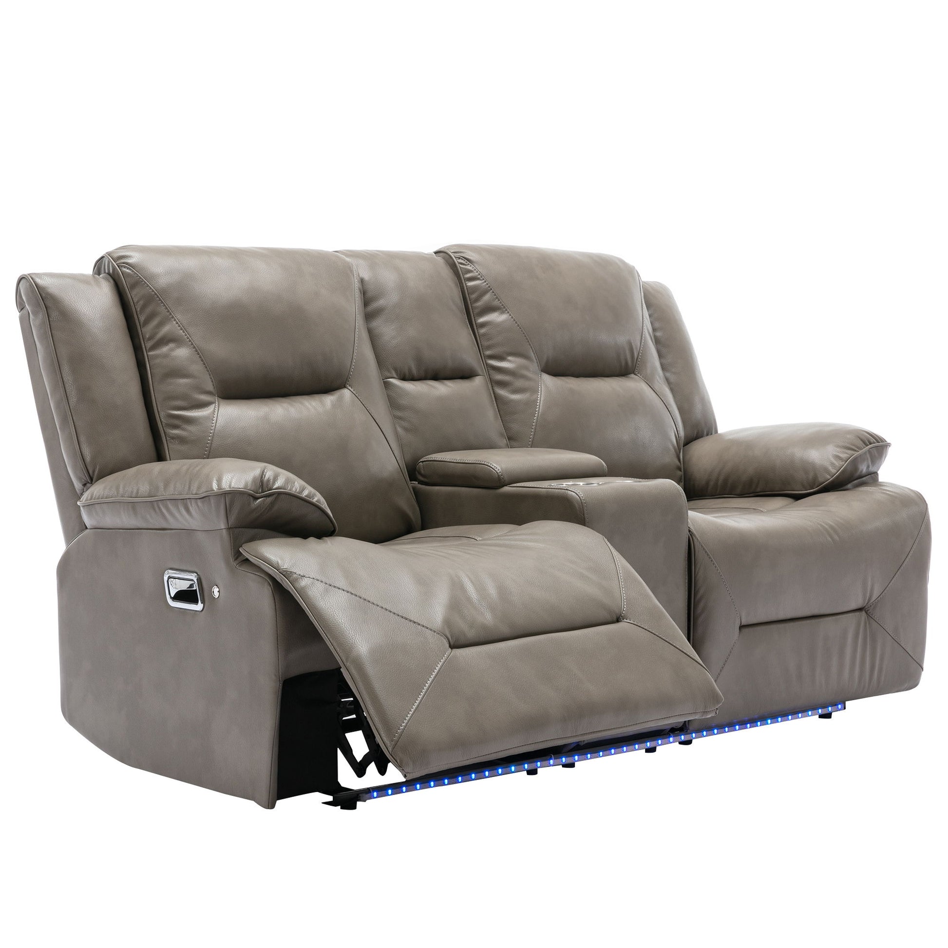 2 Seater Home Theater Recliner Manual Recliner Chair With A Led Light Strip Two Cup Holders And A Storage Box For Living Room - Gray