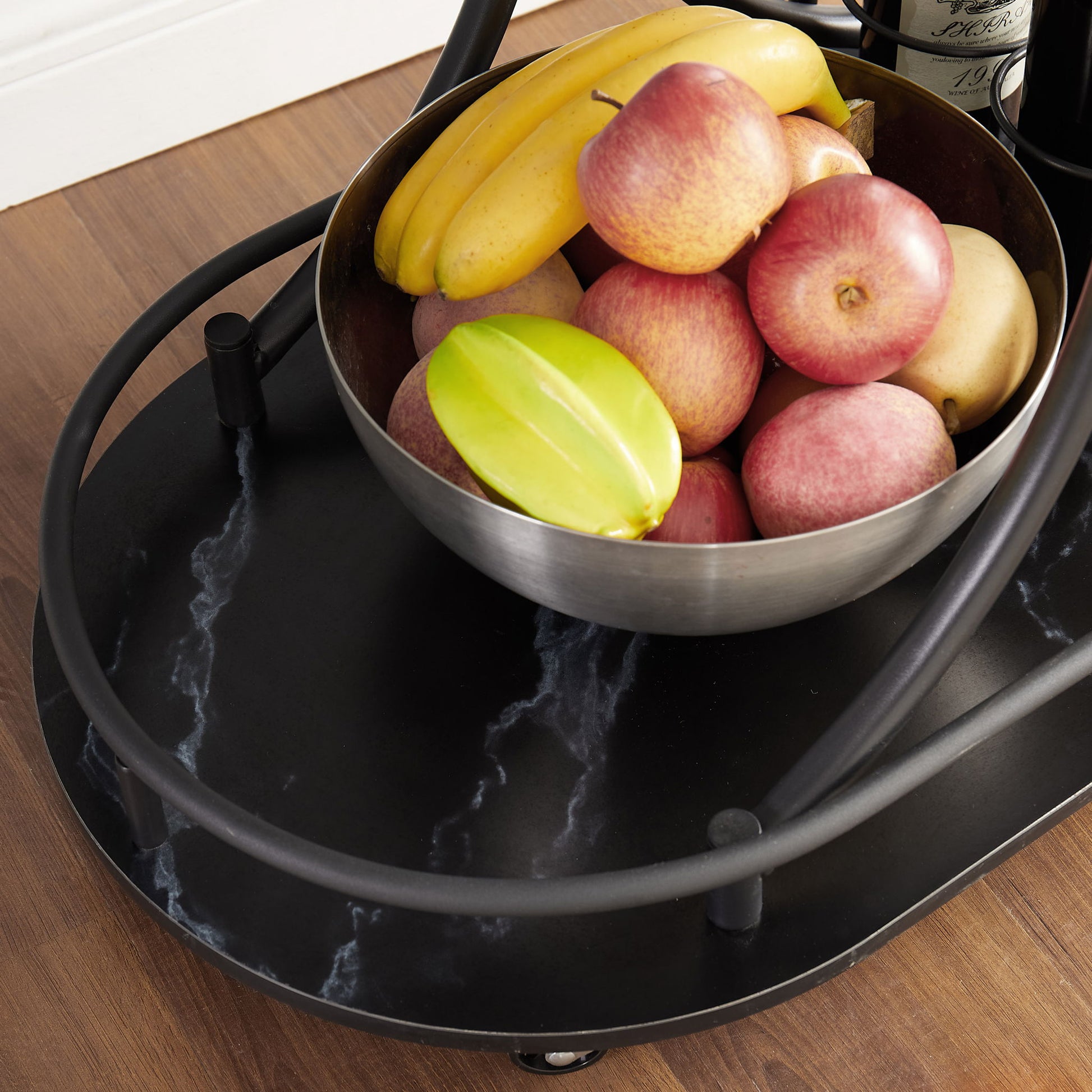 2 Tier Bar Cart, Slide Bar Serving Cart, Retro Style Wine Cart For Kitchen, Beverage Cart With Wine Rack And Glass Holder, Rolling Drink Trolley For Living Room, Dining Room - Black