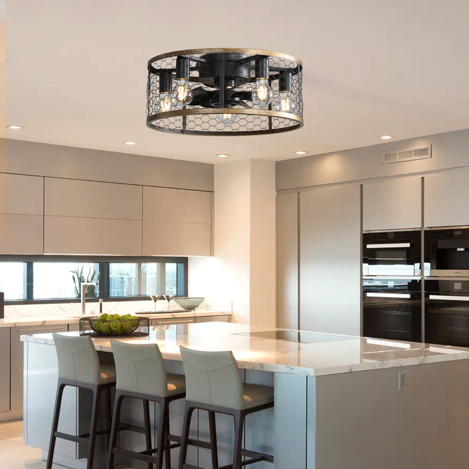 20" Industrial Caged Ceiling Fan, With 7 - ABS Blades Remote Control Reversible DC Motor, Small Flush Mount Ceiling Fan For Farmhouse - Black
