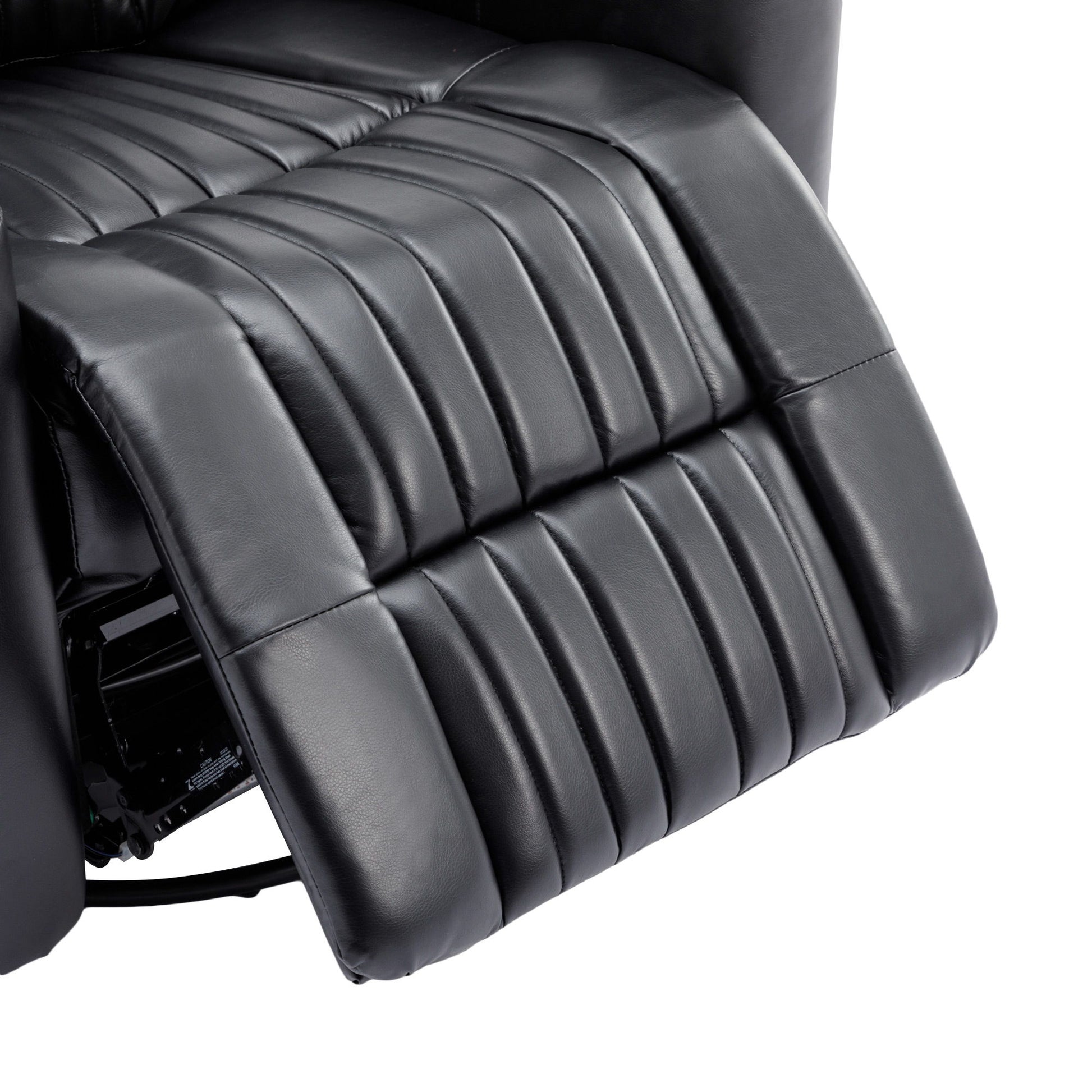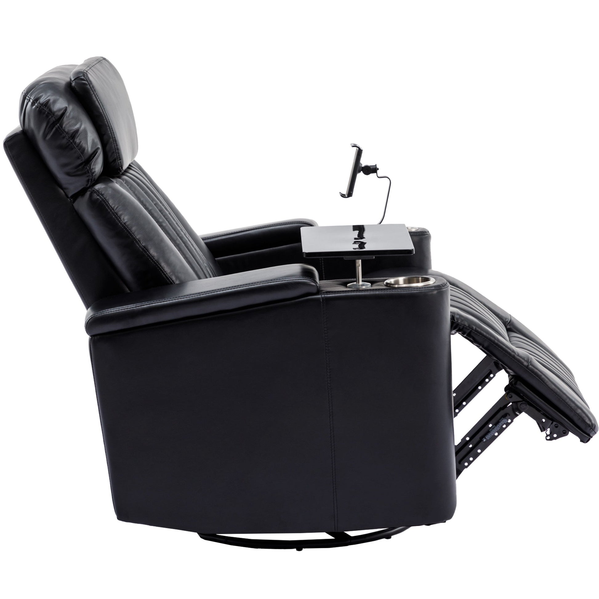 270 Degree Power Swivel Recliner Home Theater Chair With Hidden Arm Storage, LED Light, Cup Holder, And Tray Table - Black