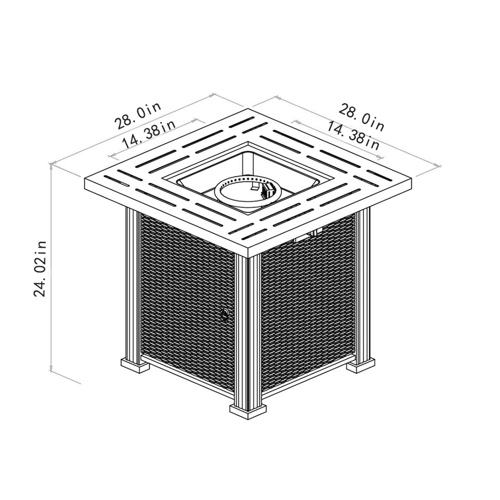 28" Square Fire Pit Table - Brown
