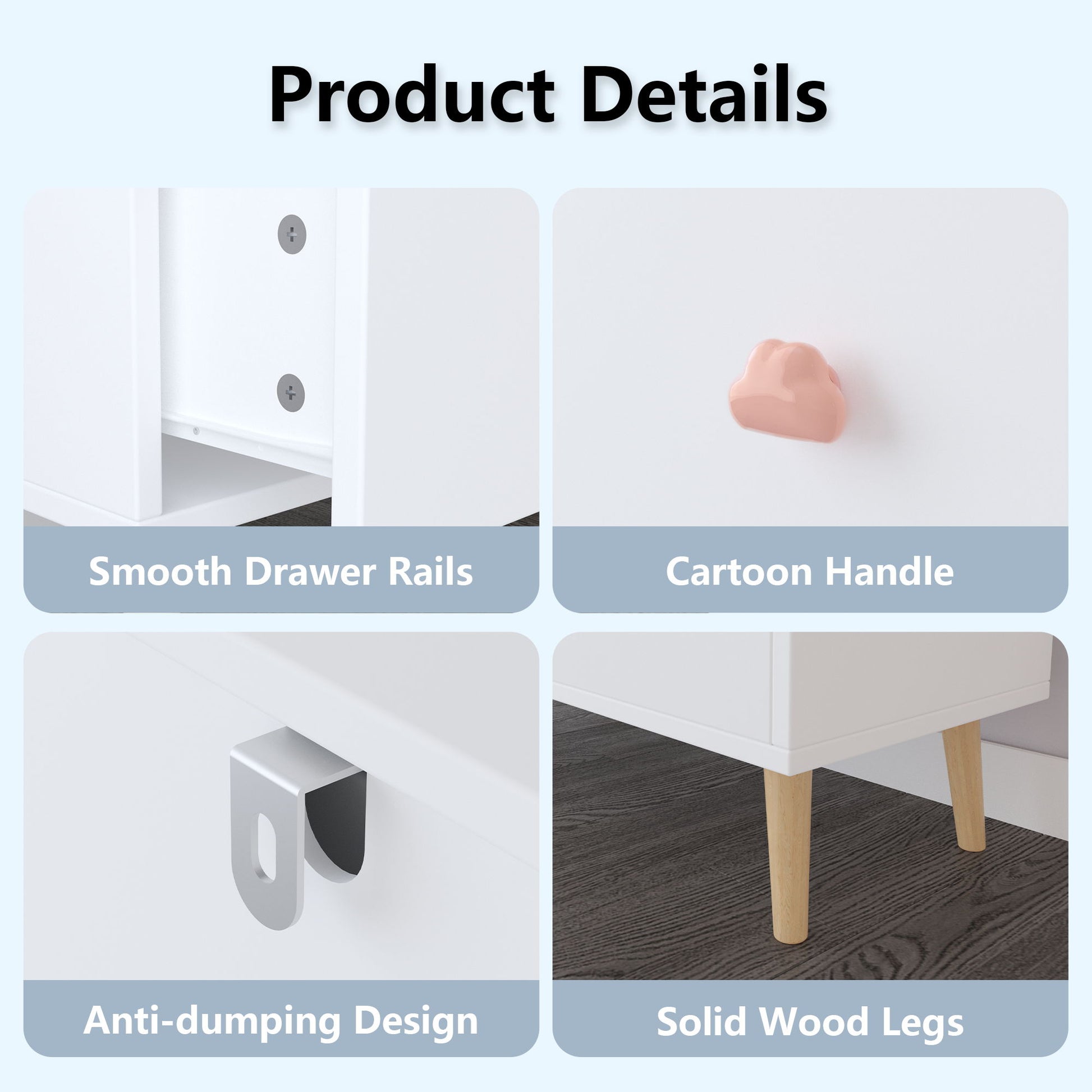 - Smooth Glides & Cartoon Pulls: Ensures effortless opening and adds a fun, child-friendly touch