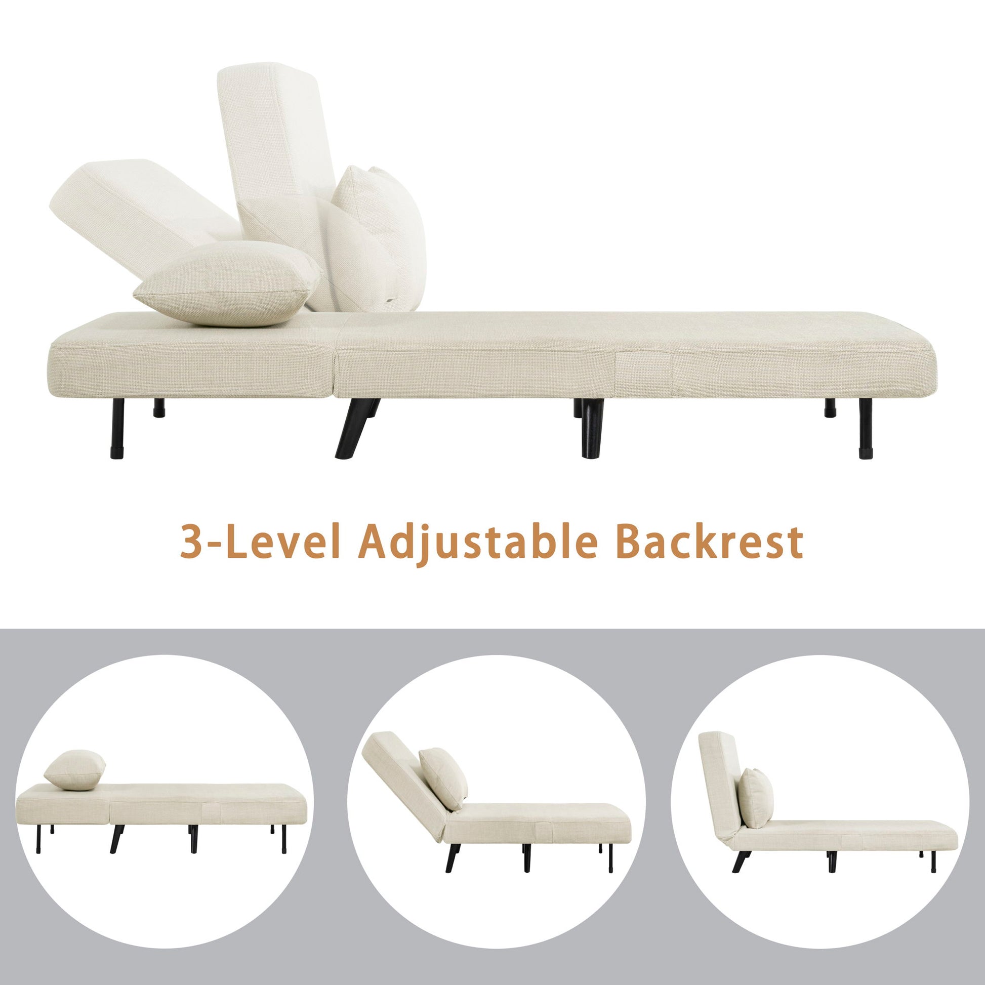3 In 1 Foldable Linen Chaise Lounge With Adjustable Backrest