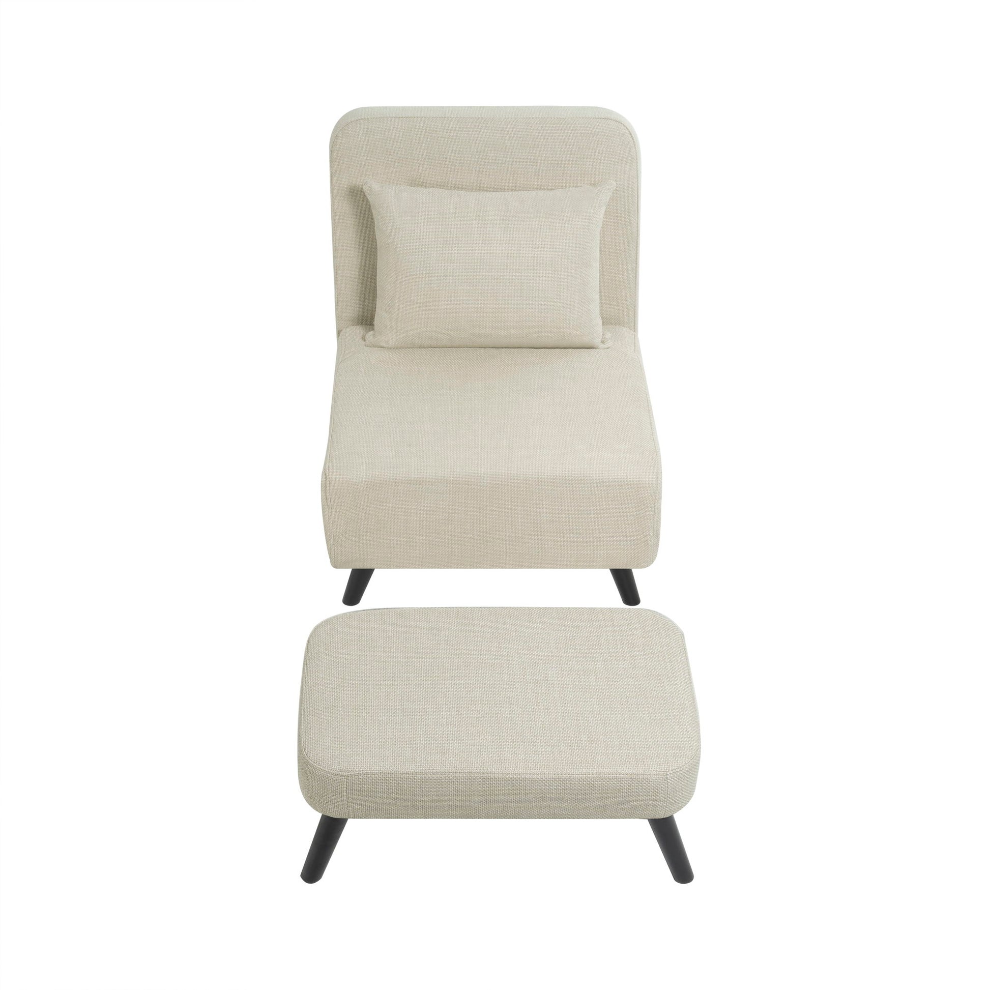 3 In 1 Foldable Linen Chaise Lounge With Adjustable Backrest Footrest & Detachable Pillow Convertible Chair Bed Accent Chair Small Space Sofa Bed For Living Room Bedroom And Office - Beige