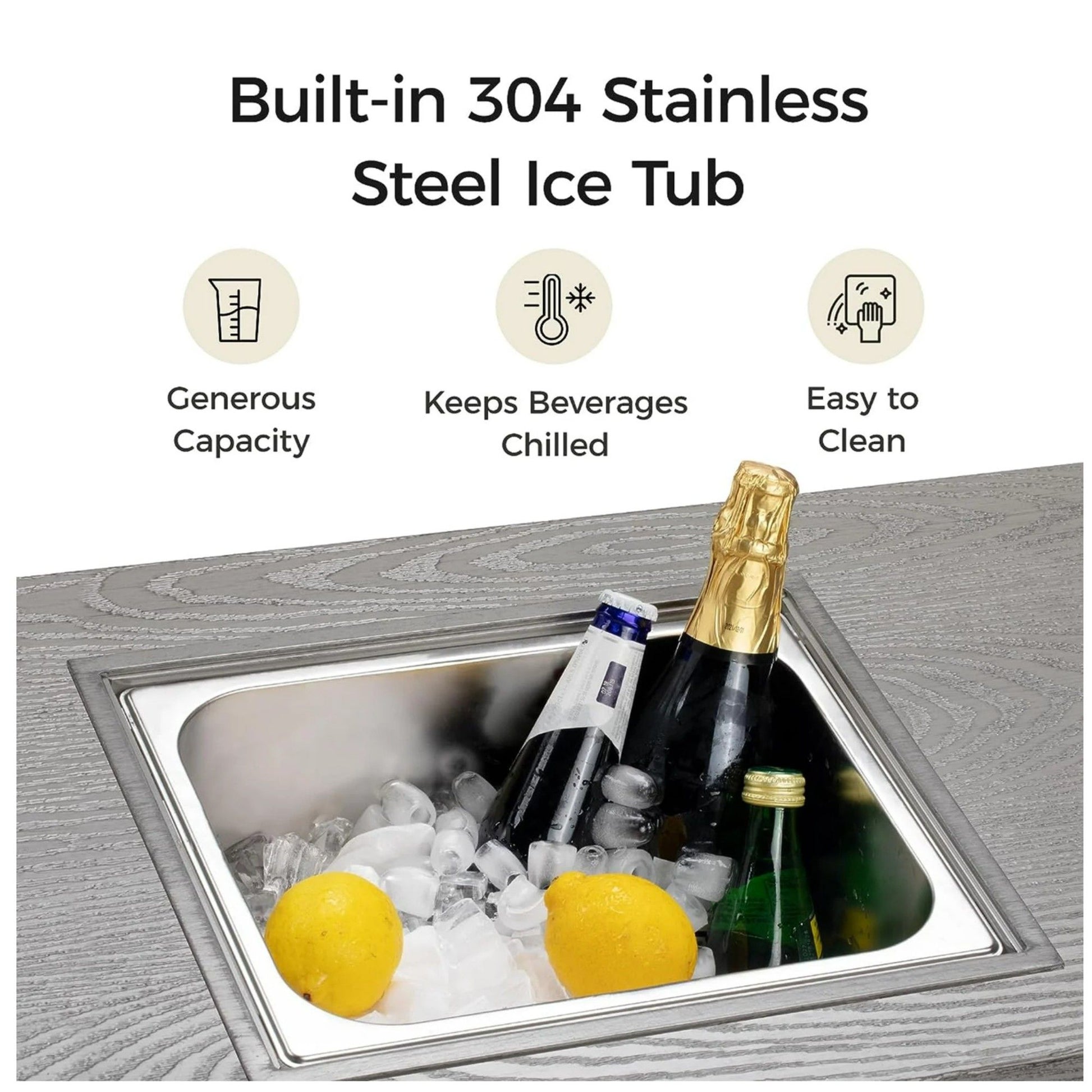 - Insulated 4.5-Gallon Ice Bucket: Double-wall 304 stainless steel keeps drinks cold for hours.