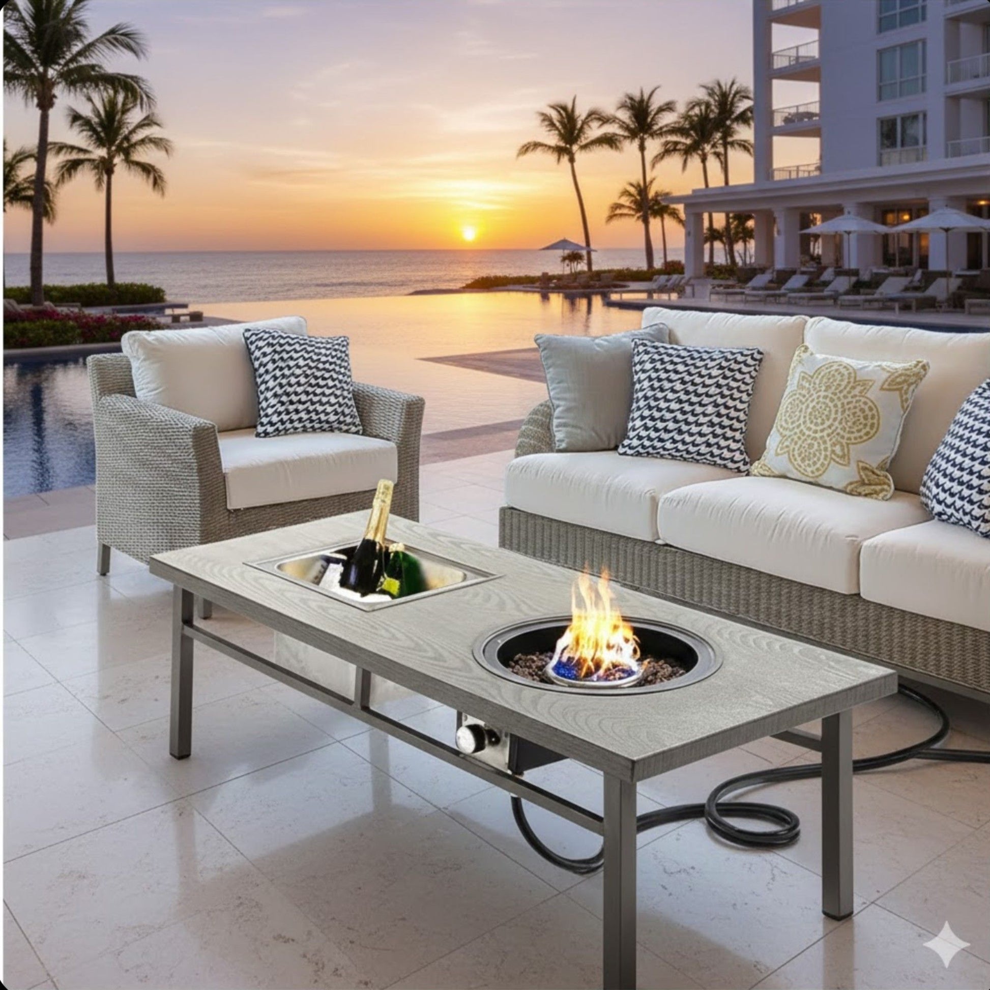 - 3-in-1 Multifunctional Design: Transforms into a fire pit, ice bucket, or coffee table for versatile outdoor use.