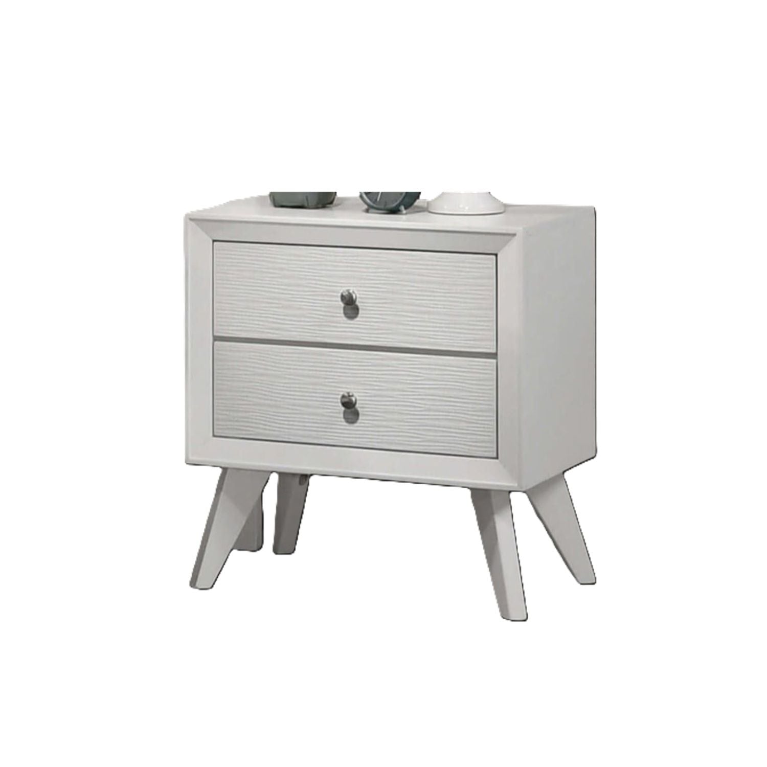 3 Piece Queen Bed Set With Wave Texture Panels And Angled Legs - White