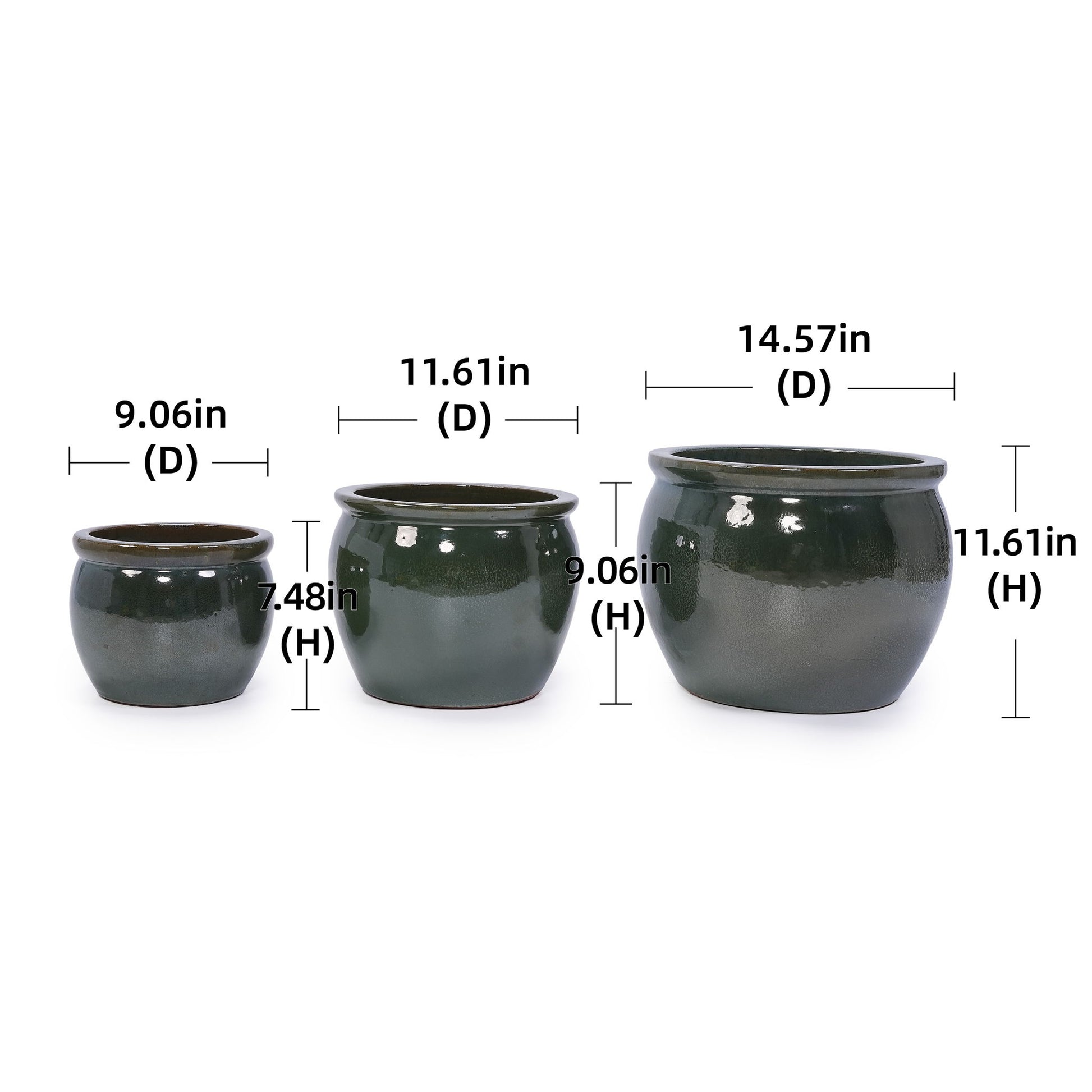 3 Pieces Ceramic Flowerpot, Planter For Patio, Garden Or Windowsills Antique - Antique Blue Green
