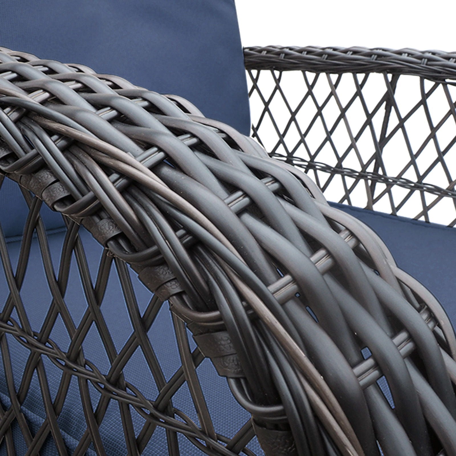 3 Pieces Conversation Set, Outdoor Wicker Rocker Swivel Patio Bistro Set, Rocking Chair With Glass Top Side Table - Navy Blue