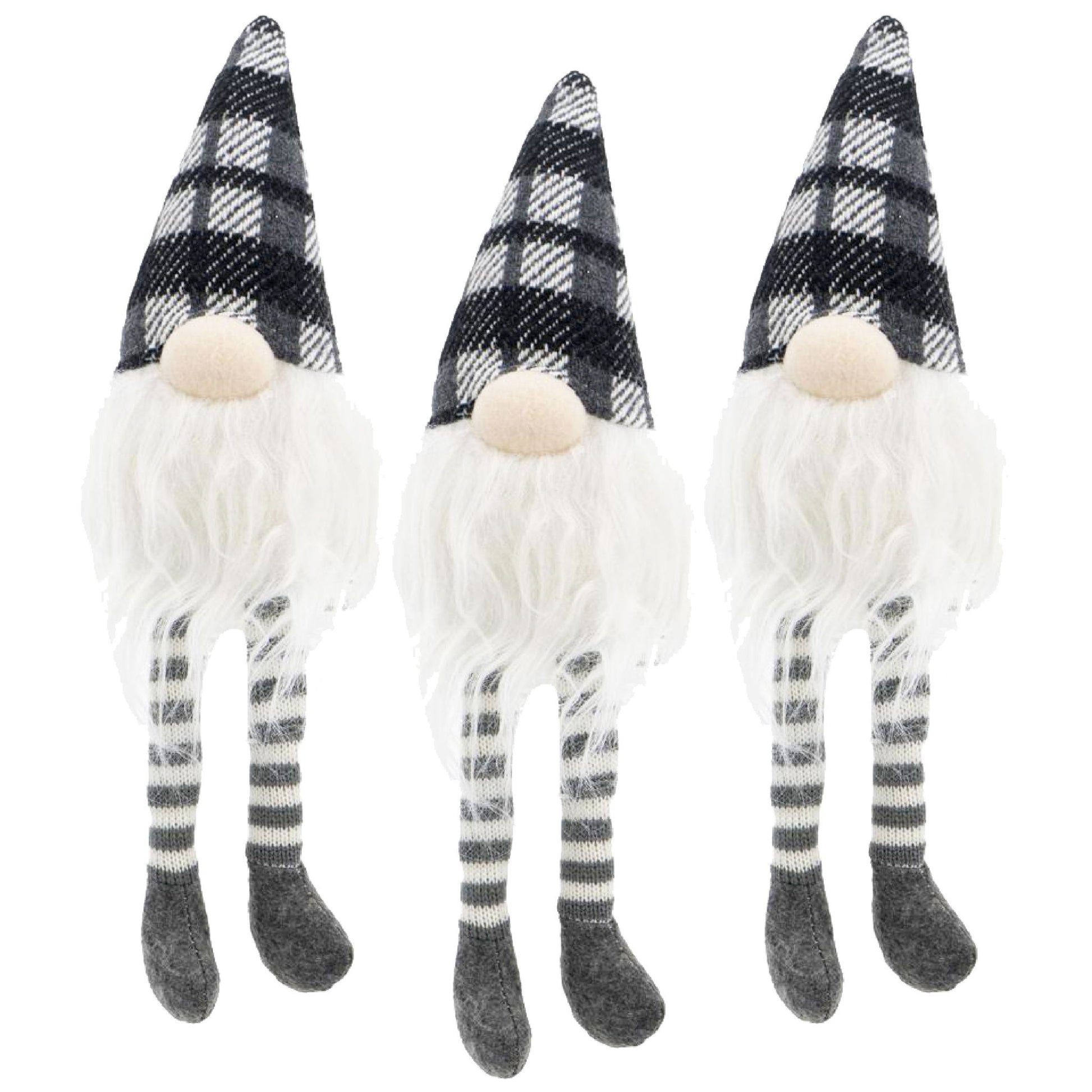 3 Pieces Sitting Gnome, Christmas Table Home Ornaments For Holiday Party Gifts - White / Gray