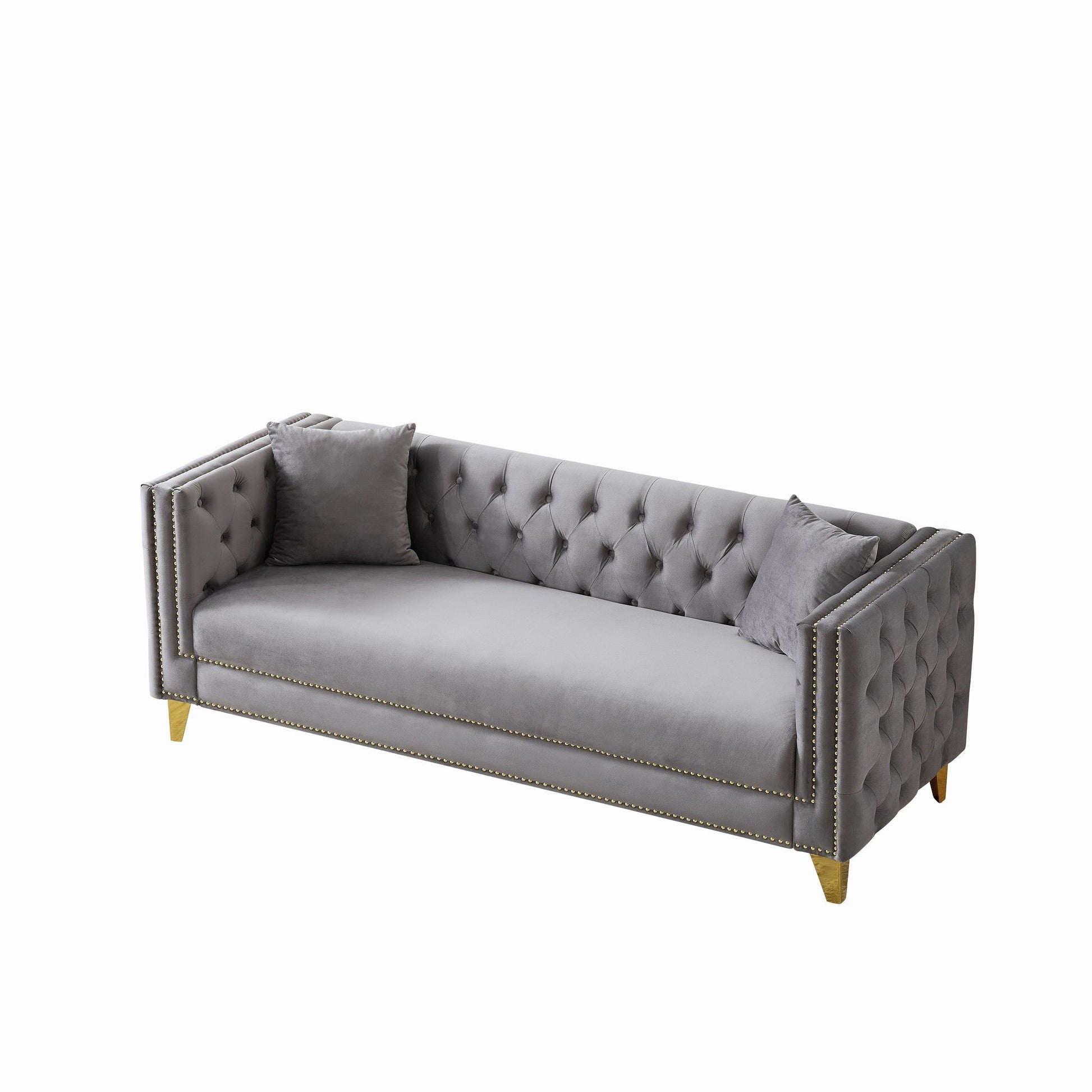 3 Seater Deep Seat Sofa, Sofa With Button Nailhead, Square Arm Couches, Furniture For Living Room - Gray