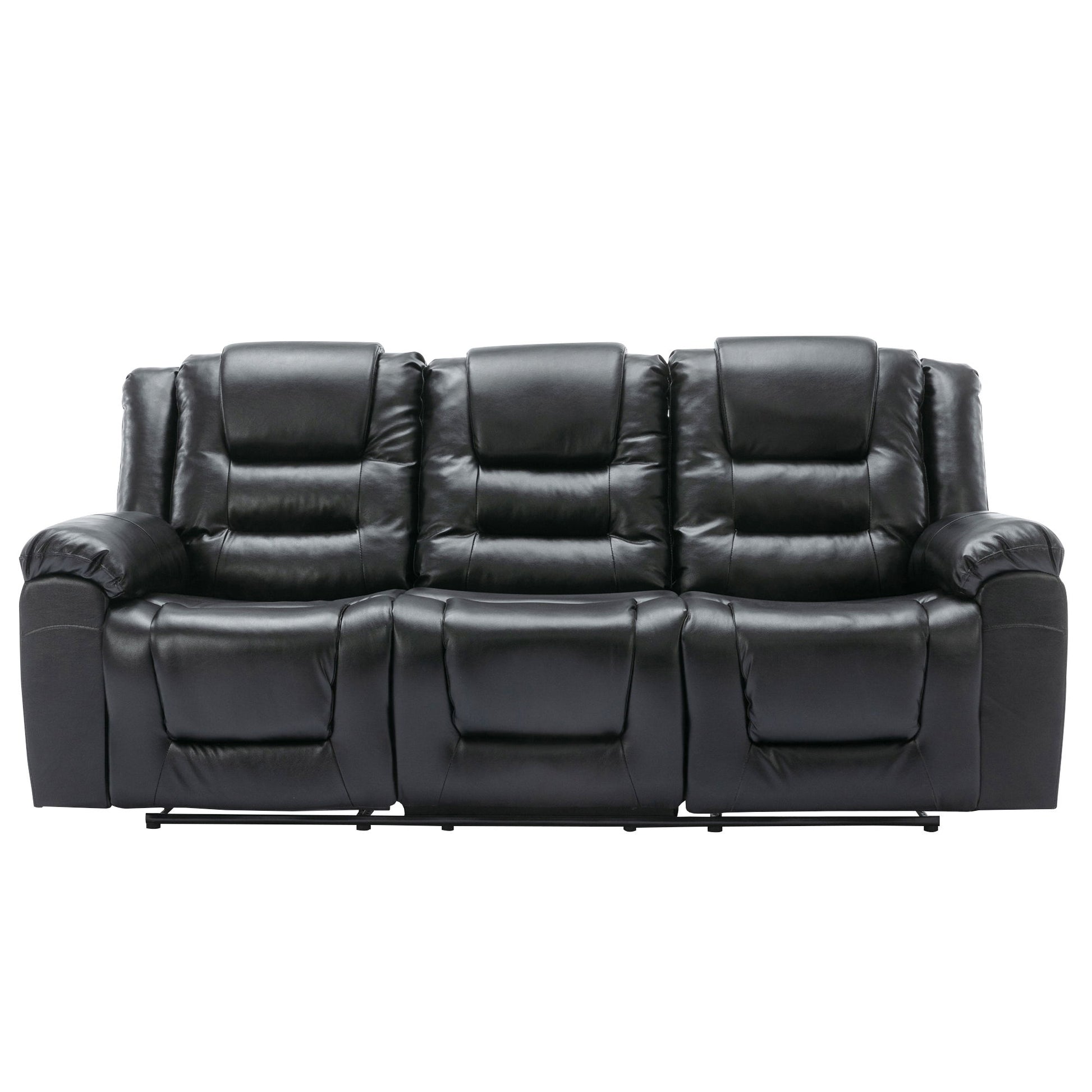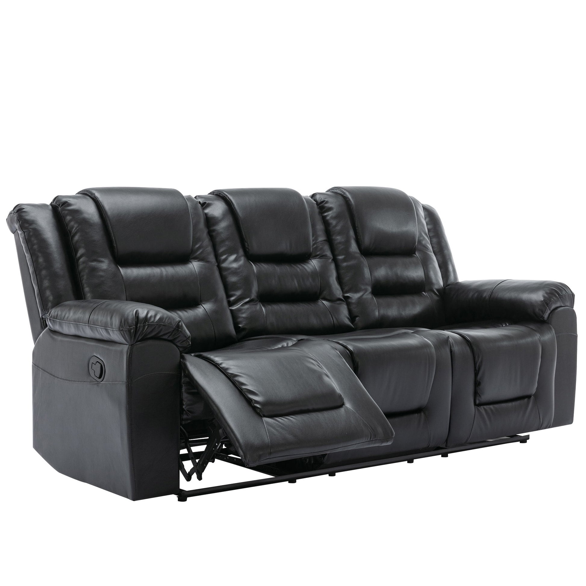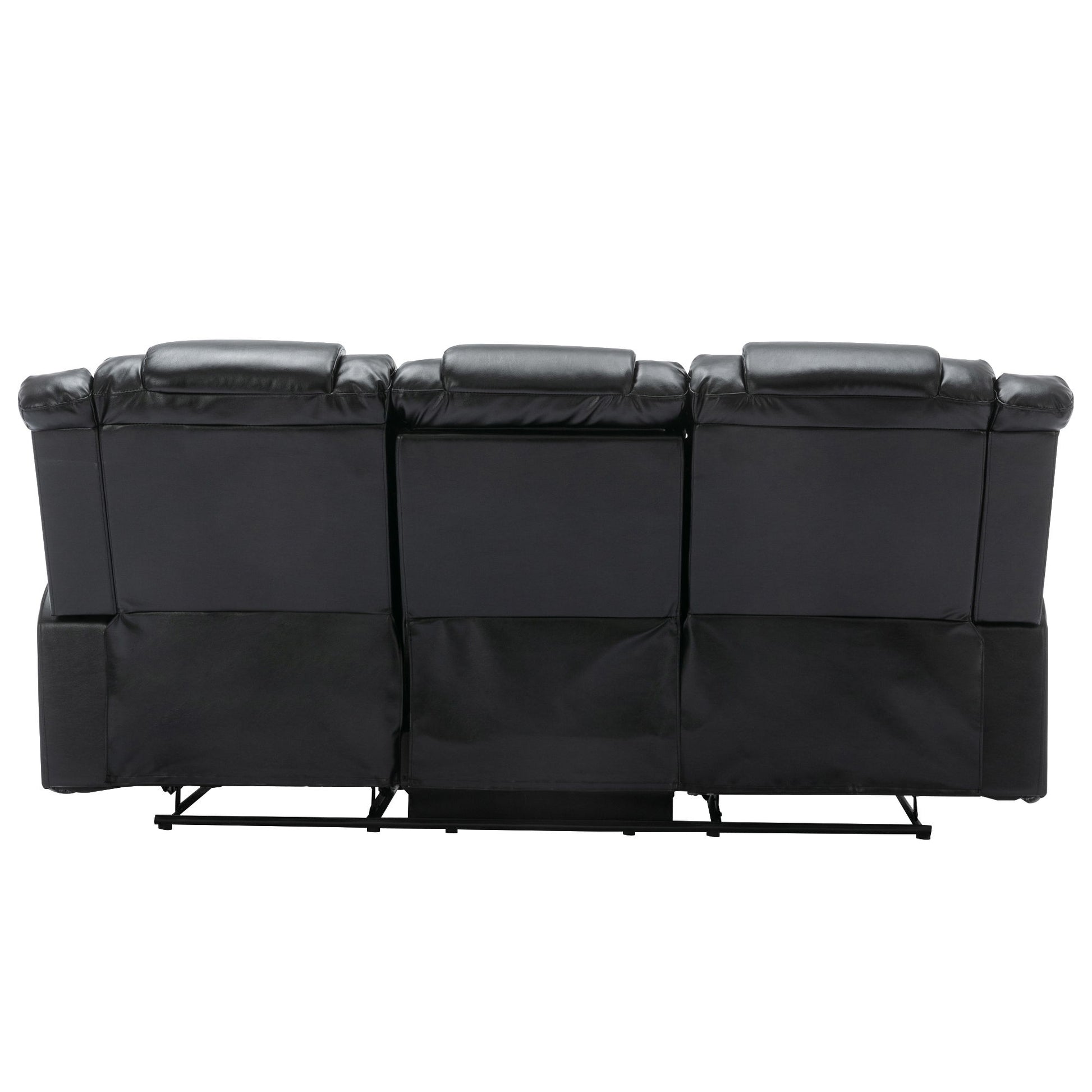 3 Seater Home Theater Recliner Manual Recliner Chair With Two Built-In Cup Holders For Living Room - Black