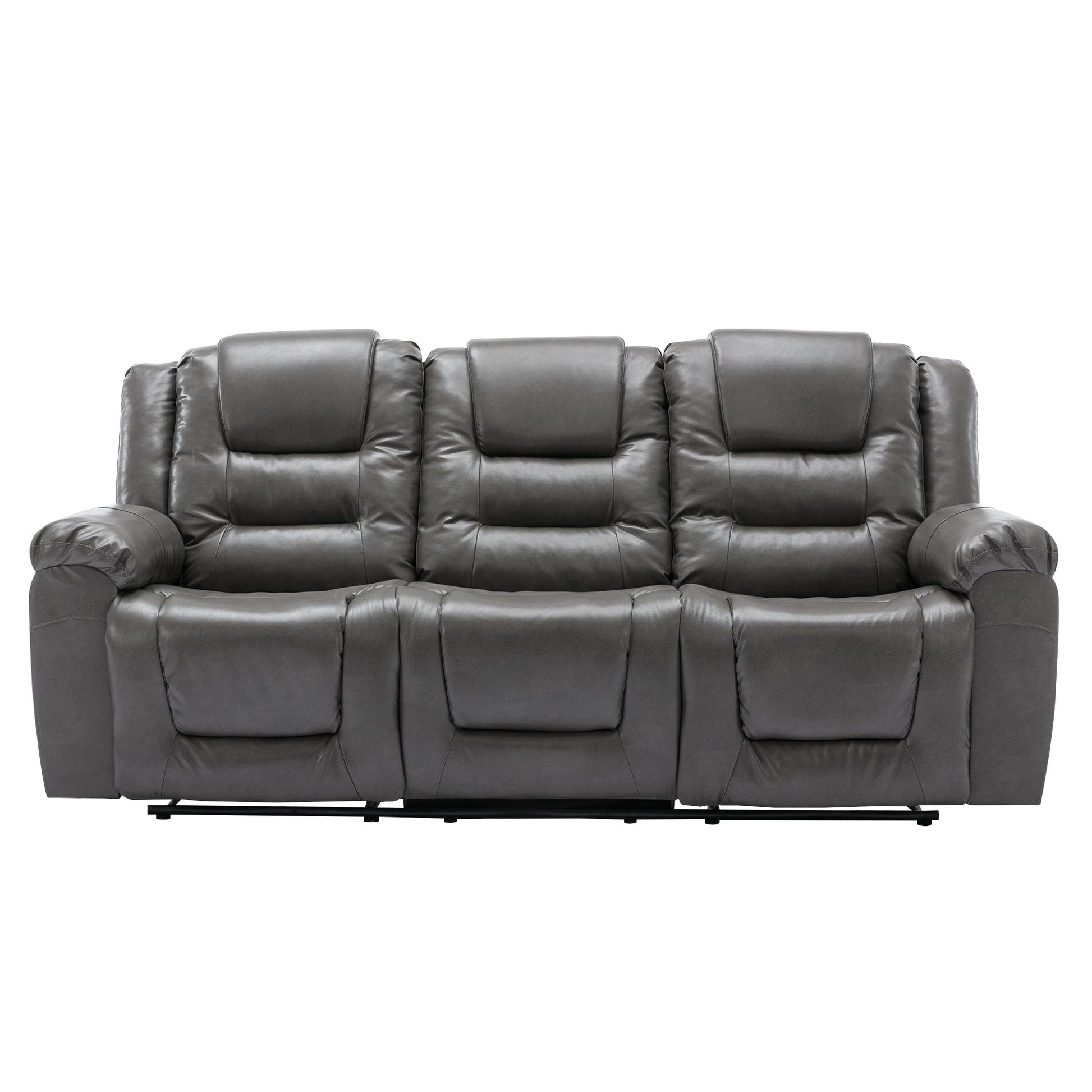 3 Seater Home Theater Recliner Manual Recliner Chair With Two Built-In Cup Holders For Living Room - Gray