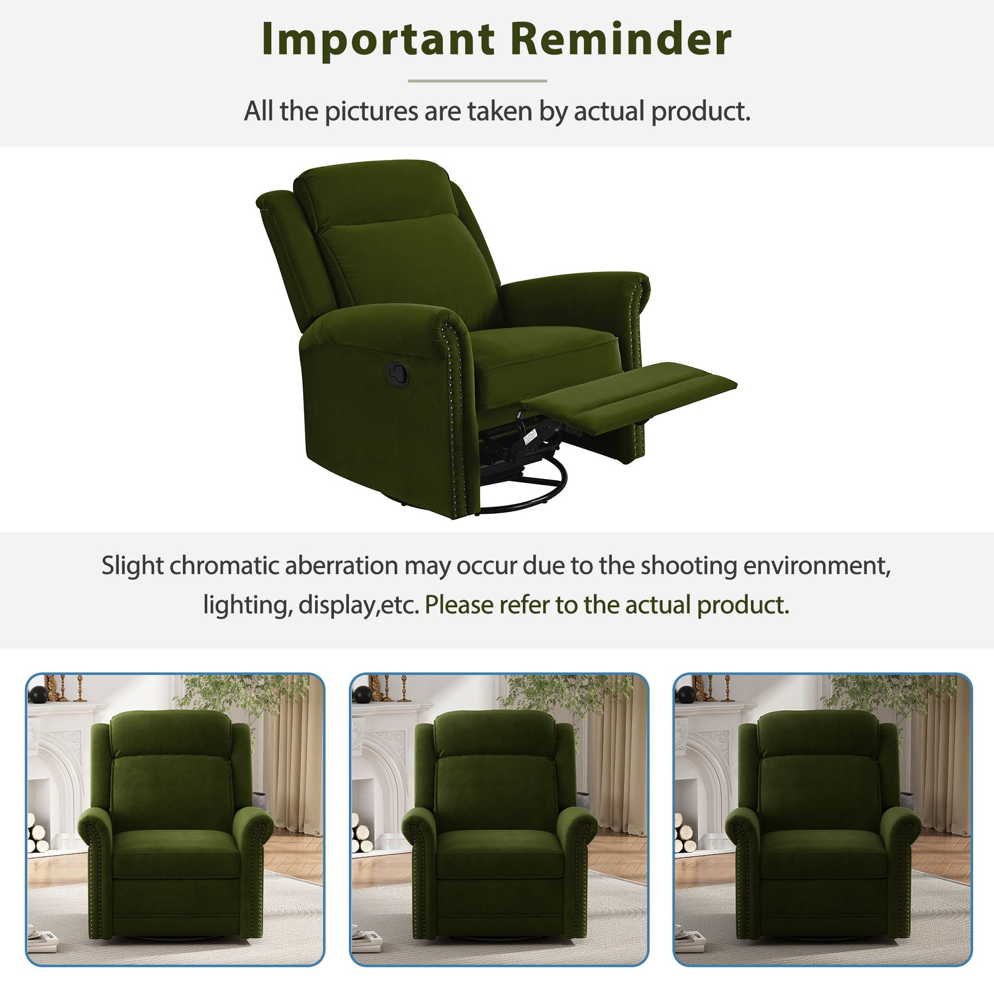 360 Degrees Swivel Recliner Manual Rocking With Adjustable Backrest For Living Room - Green
