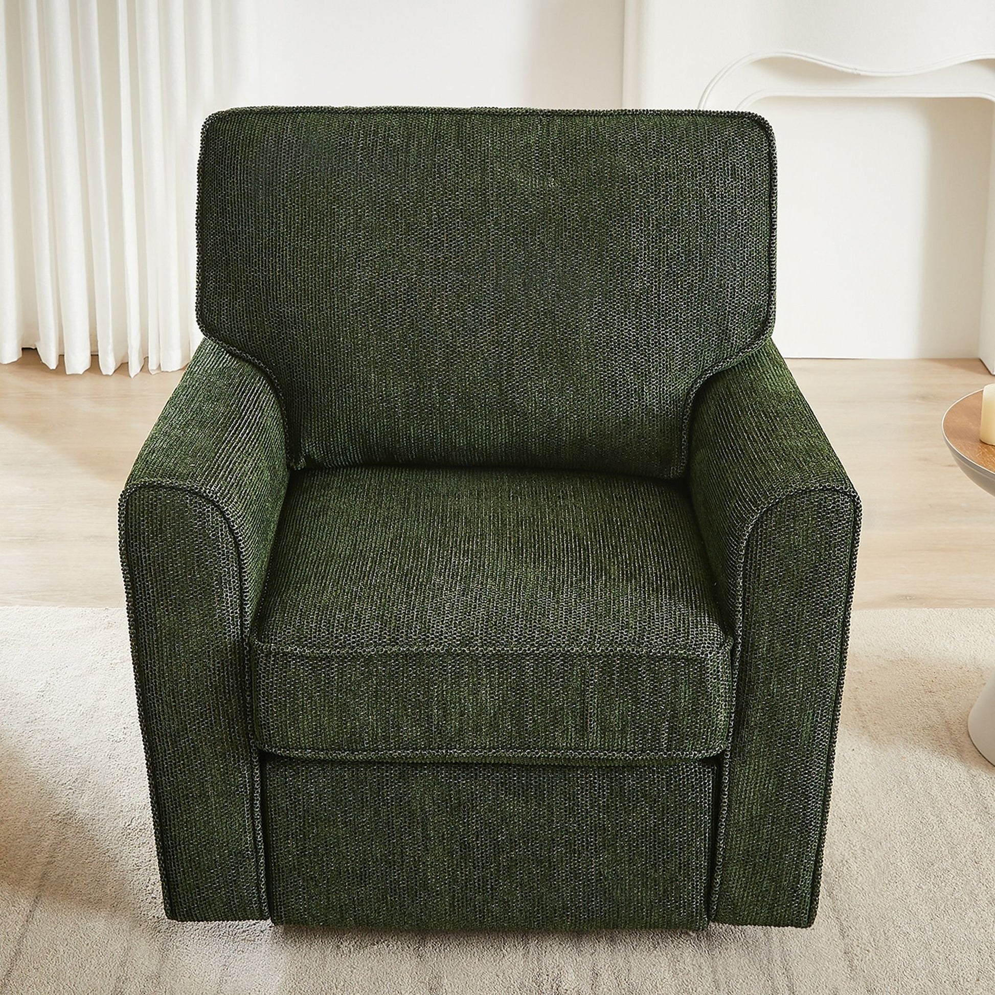 360° Swivel Chair Accent Barrel Armchair With Side Pockets, Chenille Upholstery, Compact Size - Green