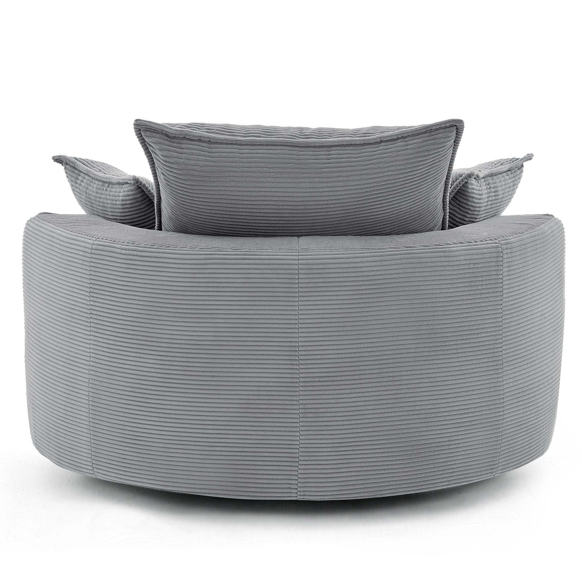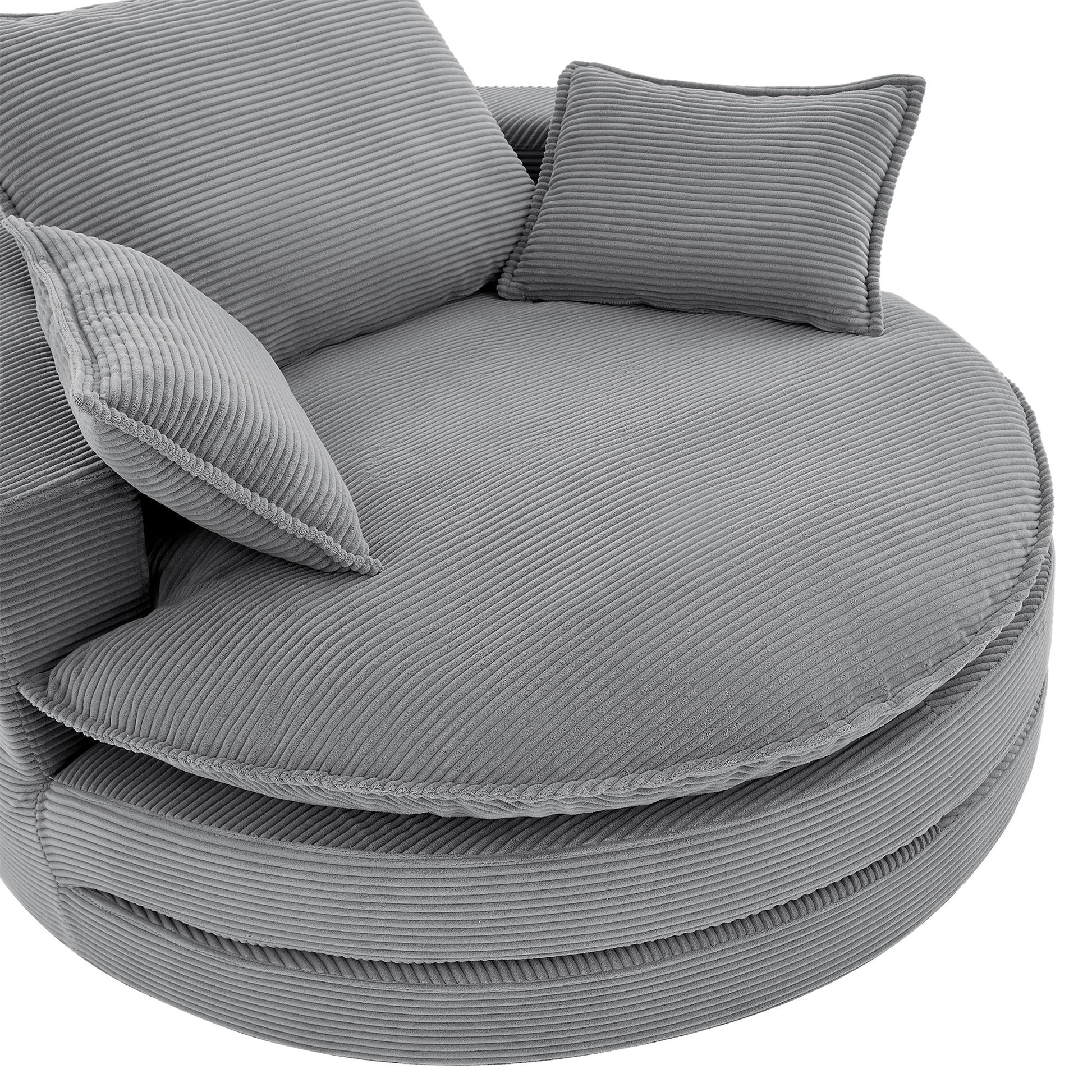 360° Swivel Sofa Chair Accent Barrel Chair With Dual Layer Cushion And 3 Removable Pillows, Corduroy - Gray