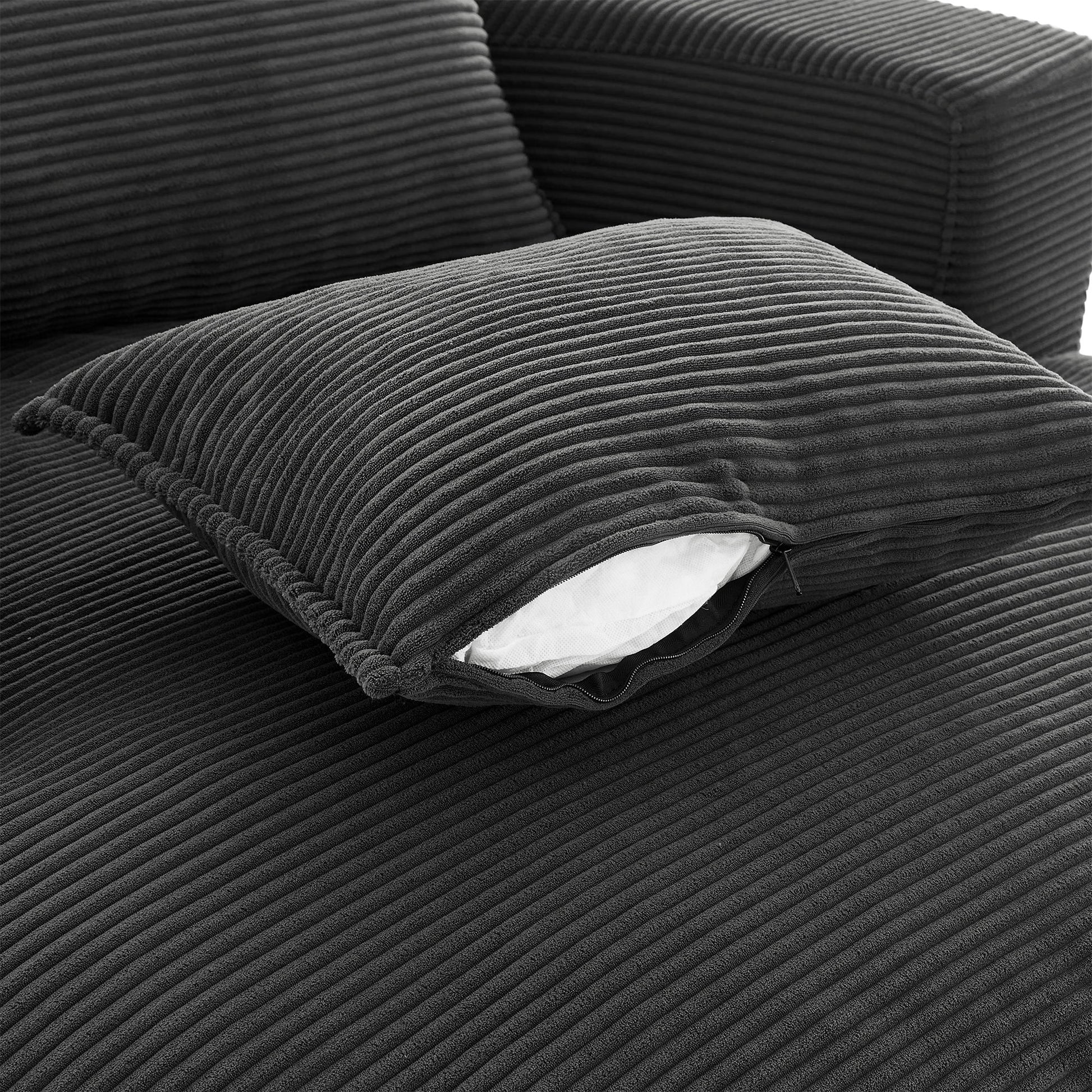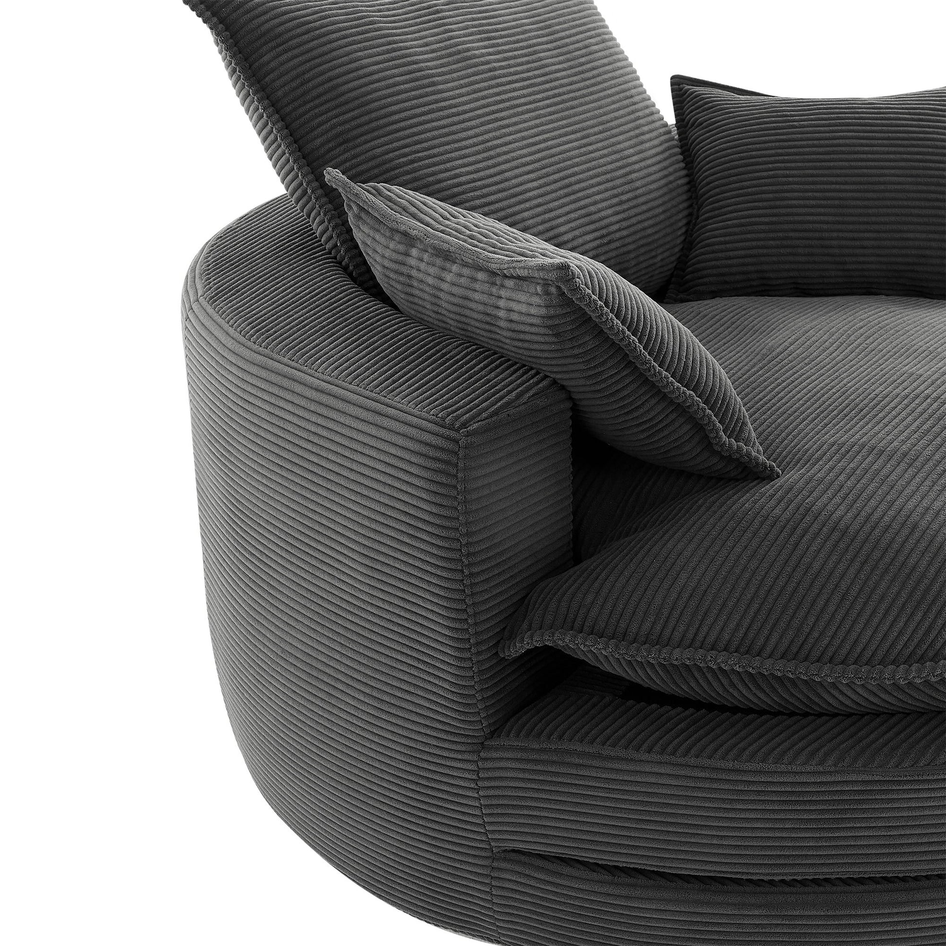 Modern 360° Swivel Sofa Chair With Dual Layer Cushion And Removable Pillows Corduroy - Black