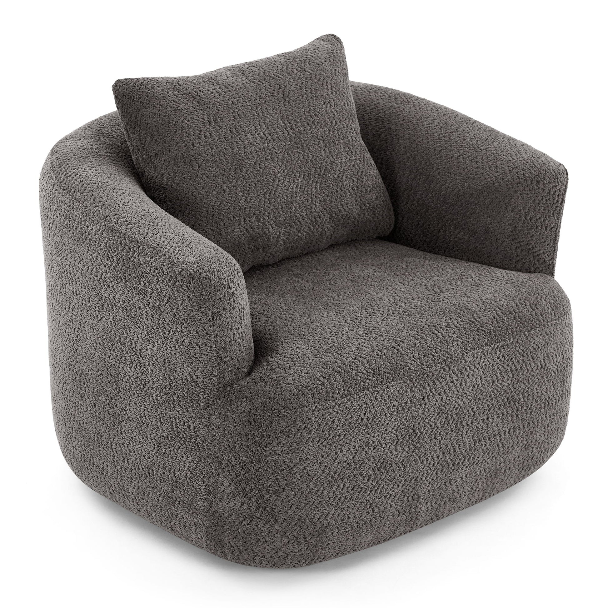Chenille Upholstered 360° Swivel Chair With Throw Pillow, Accent Chair Sofa For Living Room And Office - Dark Brown