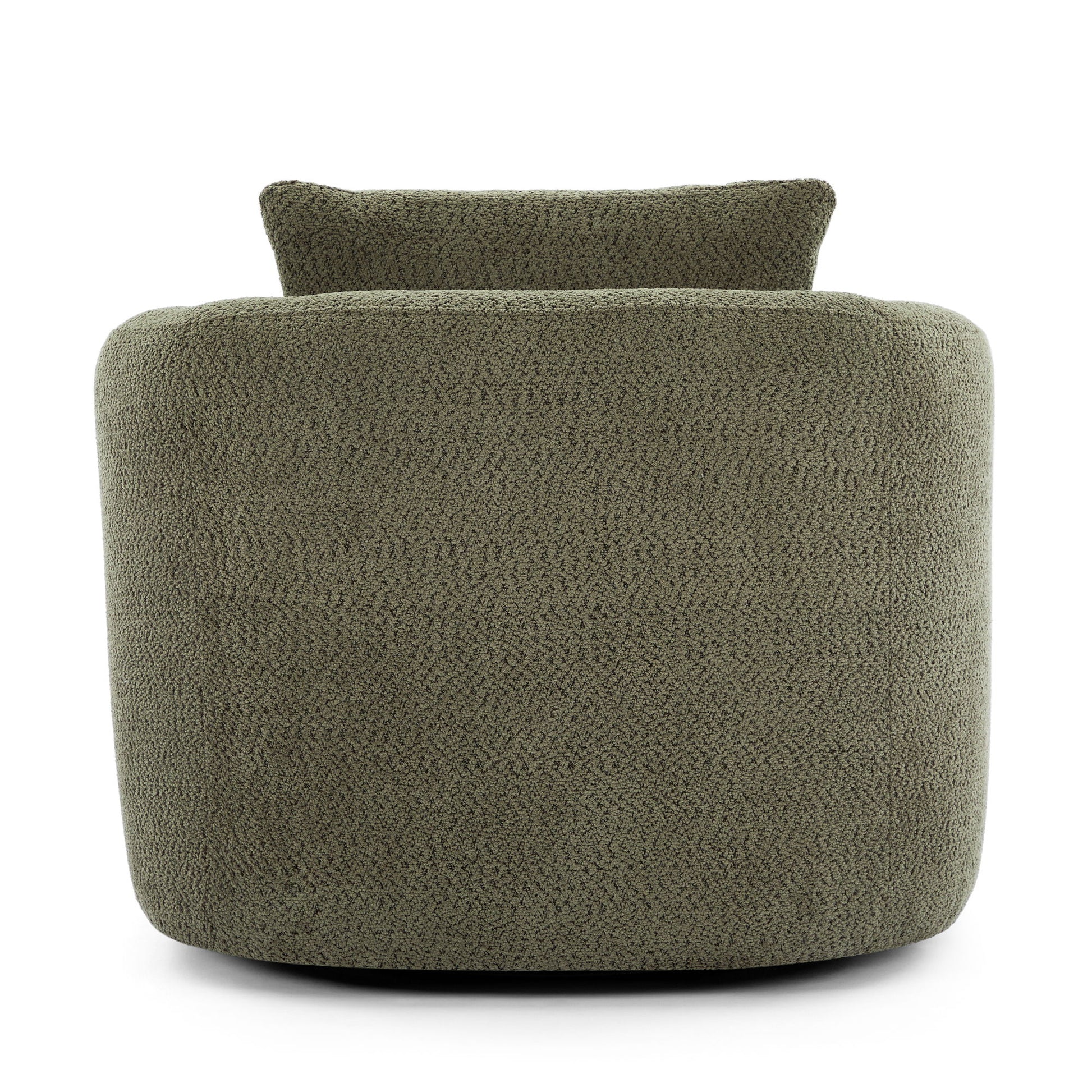360° Swivel Chair, Chenille Upholstered Barrel Sofa Chair With Throw Pillow, For Living Room, Office - Green