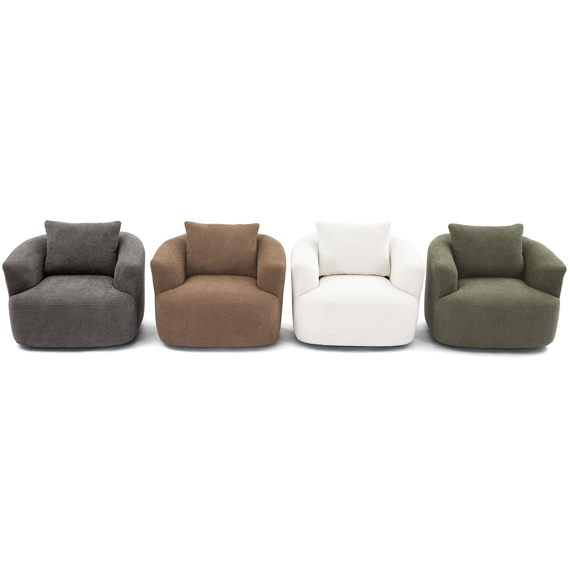360° Swivel Barrel Sofa Chair With Throw Pillow, Chenille Upholstered Accent Chair