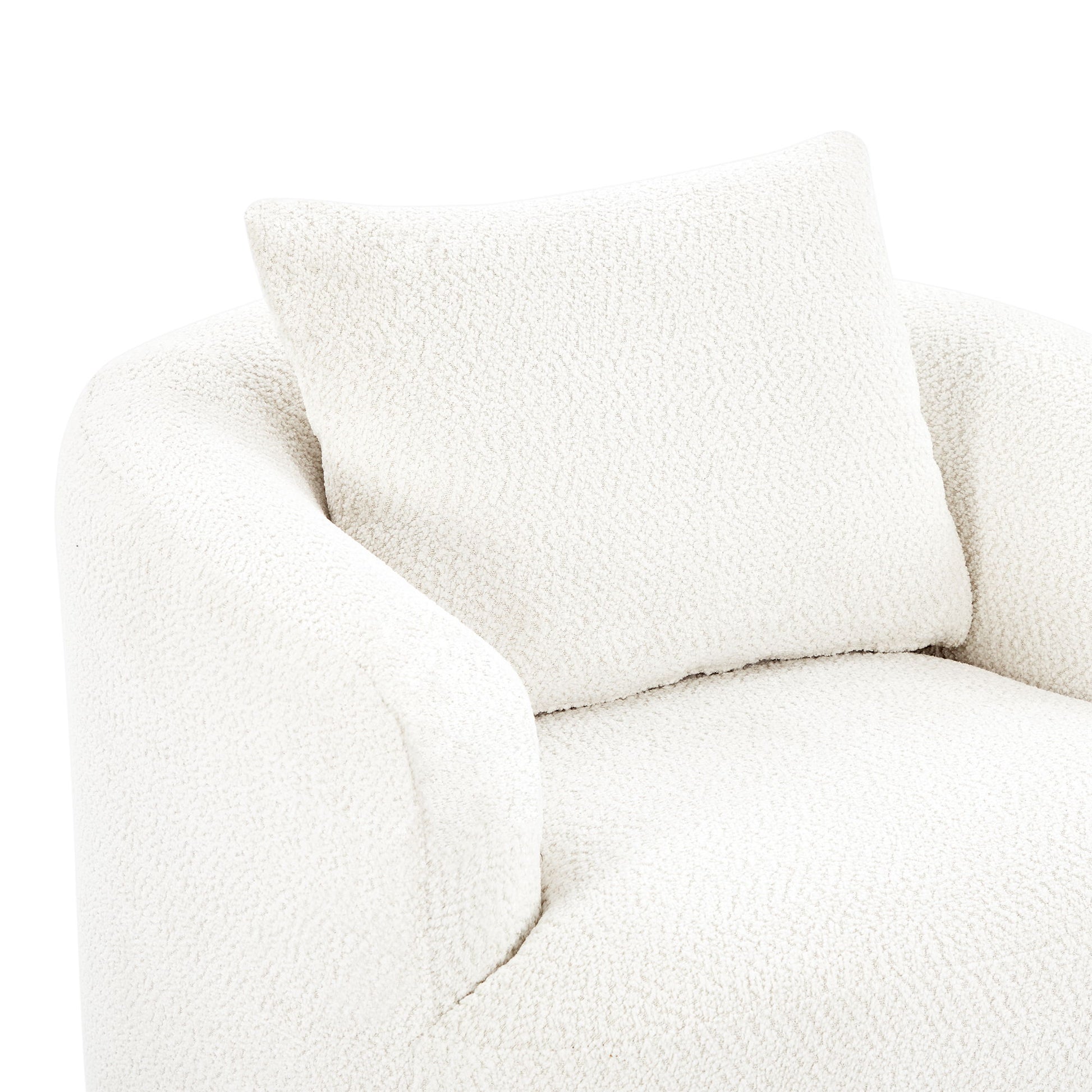 360° Swivel Barrel Sofa Chair With Throw Pillow, Chenille Upholstered Accent Chair - Beige