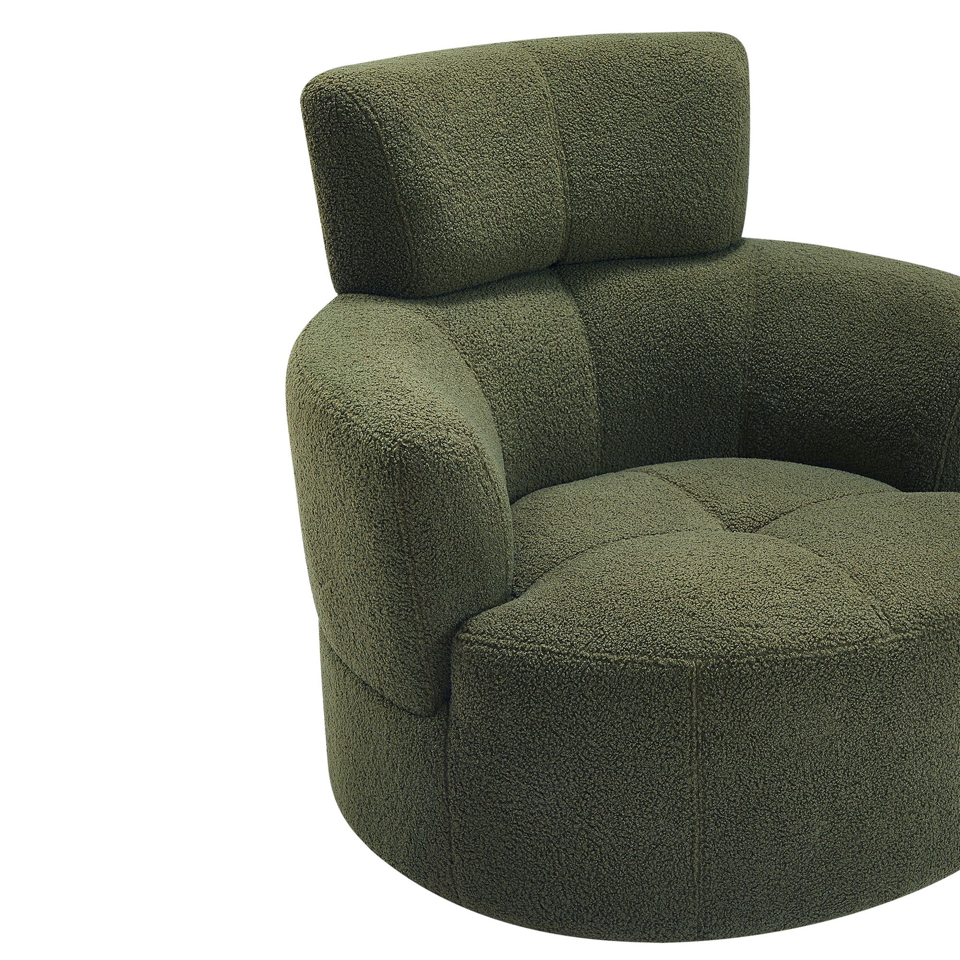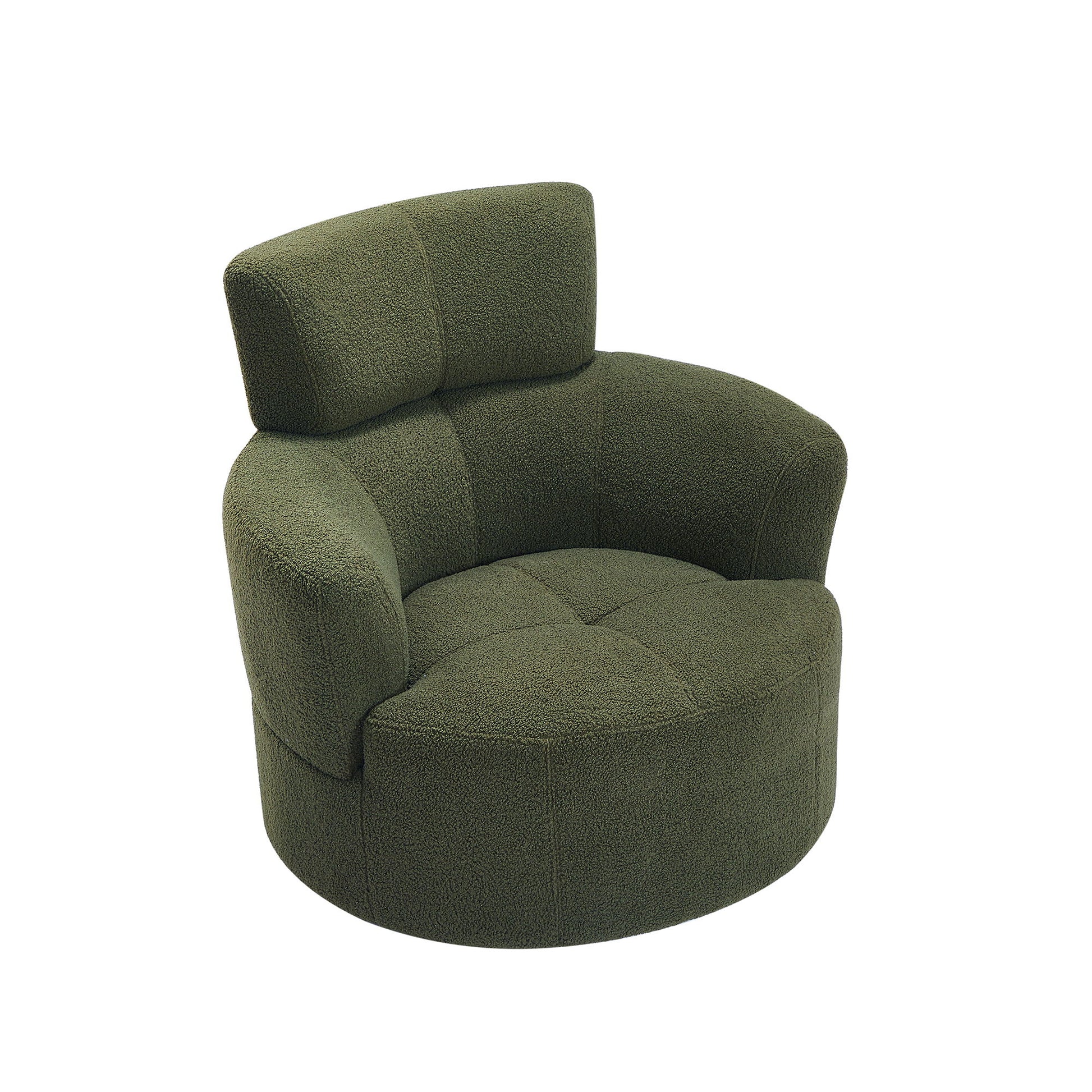 360 Degree Swivel Upholstered Accent Barrel Chair With Adjustable Headrest Berber Fleece - Green