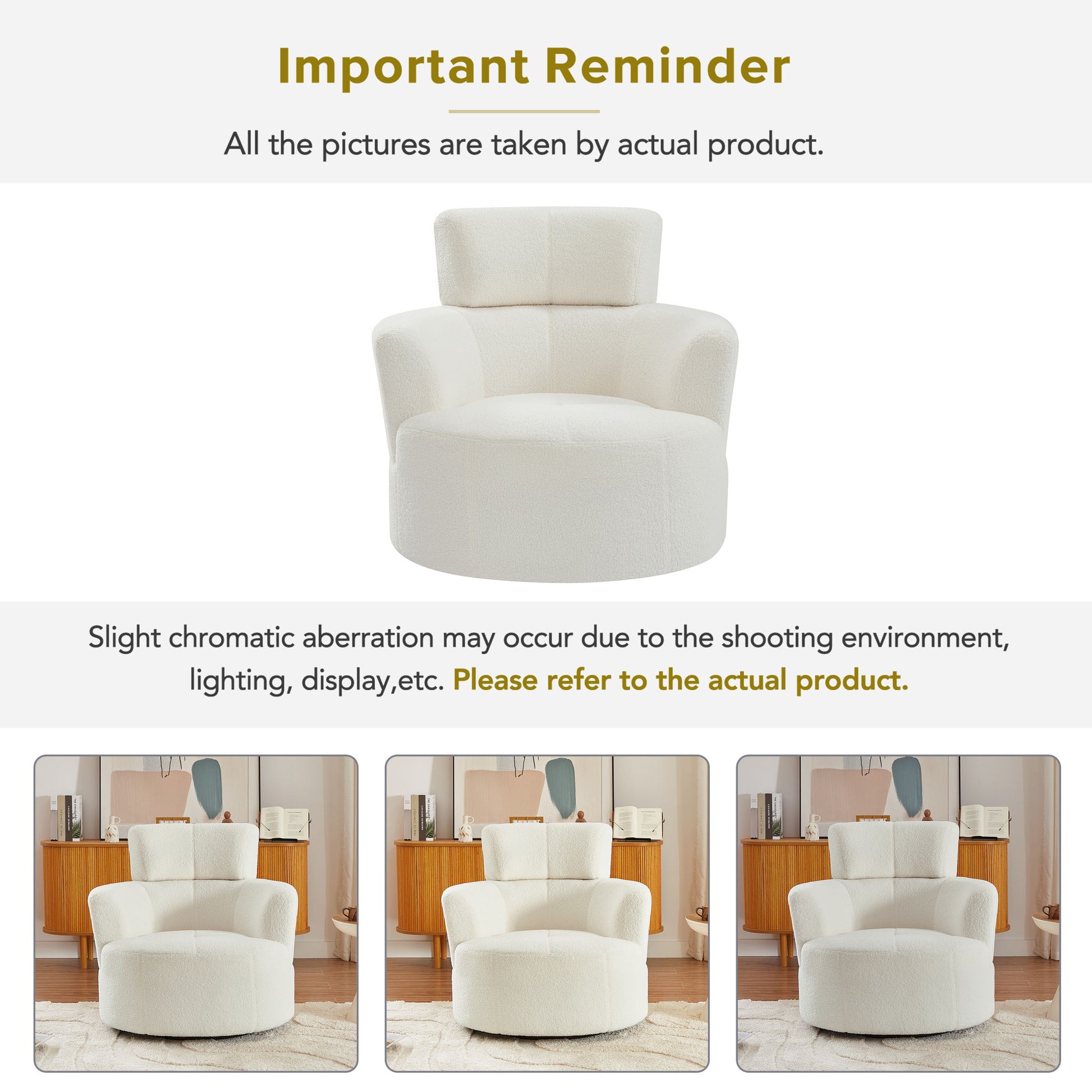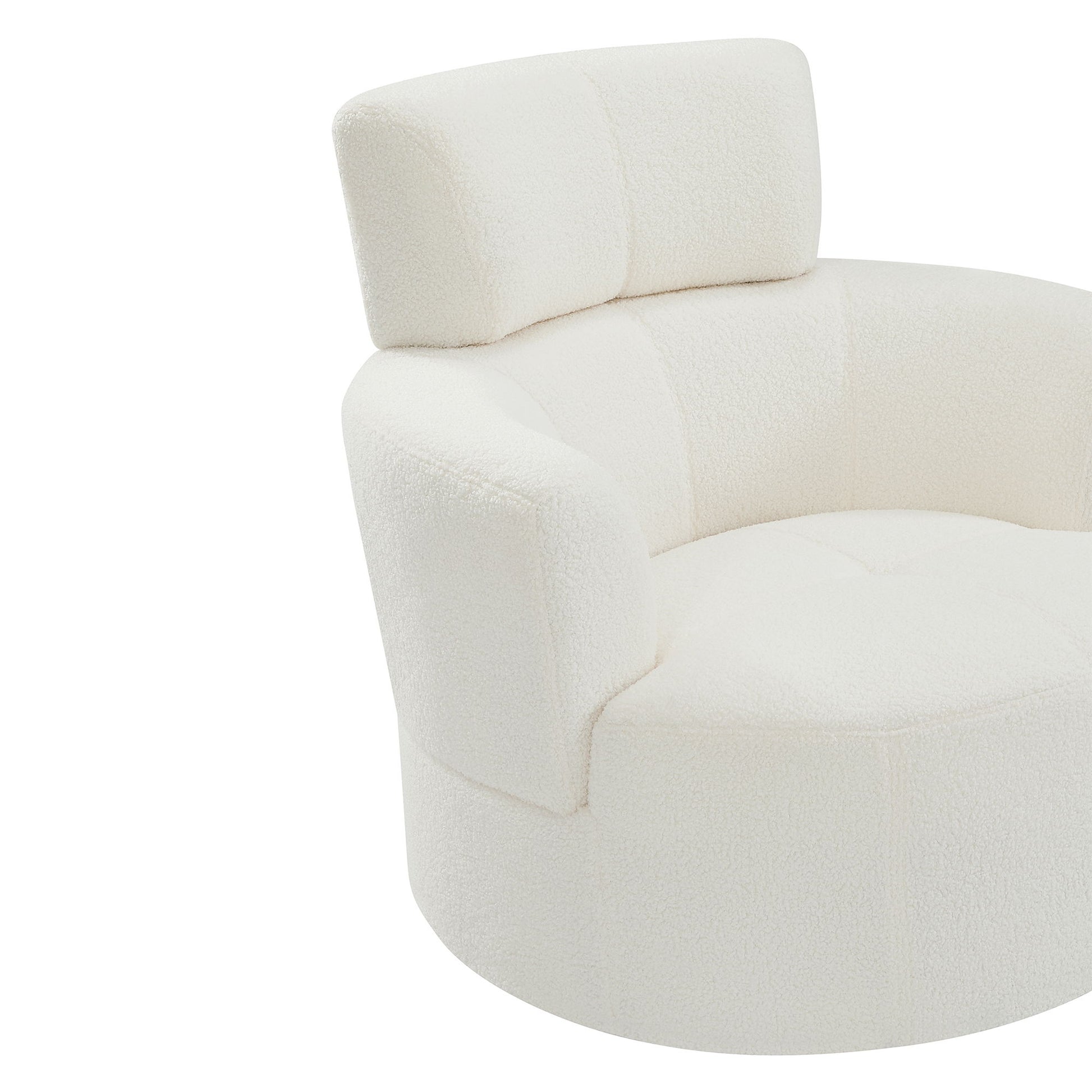 360 Degree Swivel Accent Barrel Chair With Adjustable Headrest Berber Fleece For Living Room, Bedroom, Office - Cream
