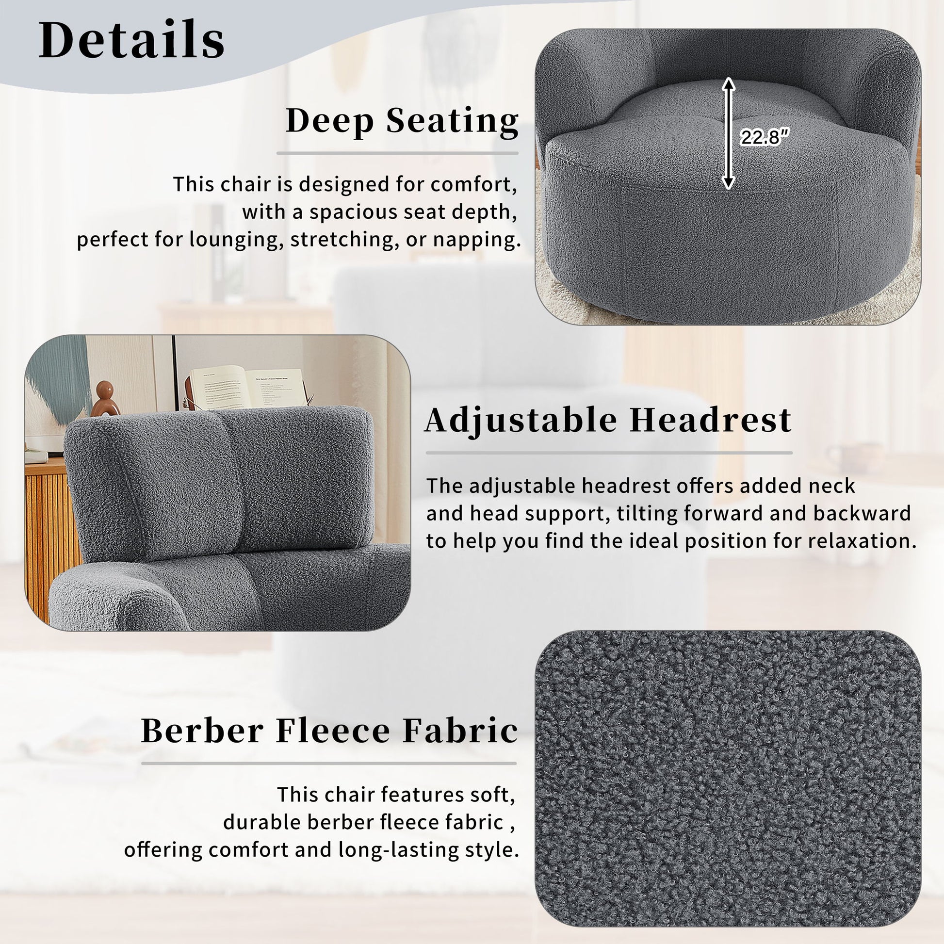 360 Degree Swivel Chair Upholstered Accent Barrel Chair With Adjustable Headrest, Berber Fleece - Gray