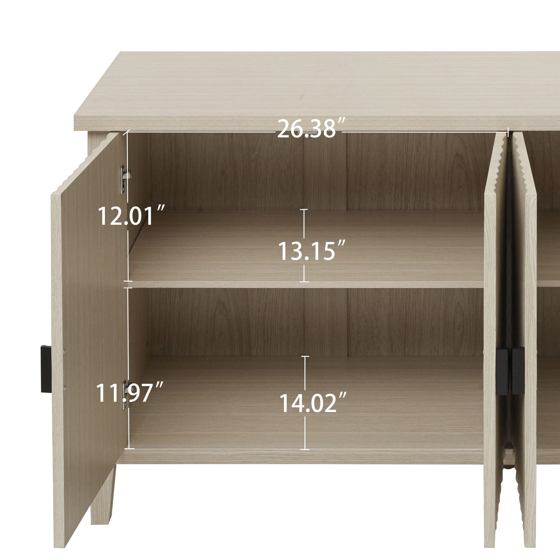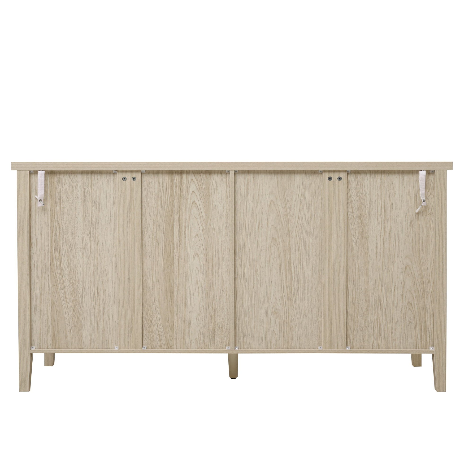 4 Door Sideboard, Carved Sideboard Buffet Cabinet With Storage, Modern Coffee Bar Cabinet With Adjustable Shelf For Living Room, Dining Room, Kitchen - Natural