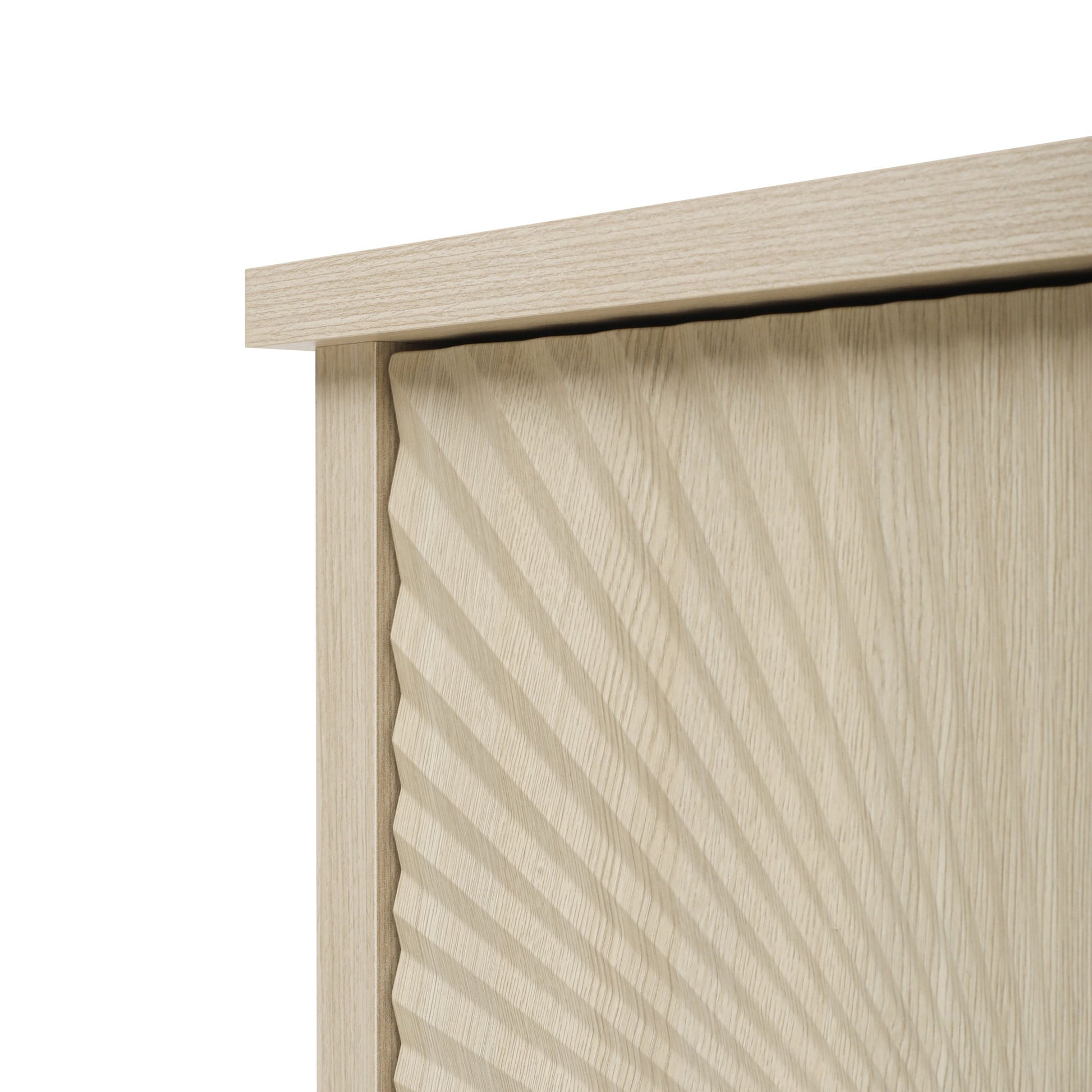 - Elegant 3D Carved Design: Features a stylish wood grain finish and sunray-inspired 3D carved door panels that bring depth and a striking visual effect to any room.