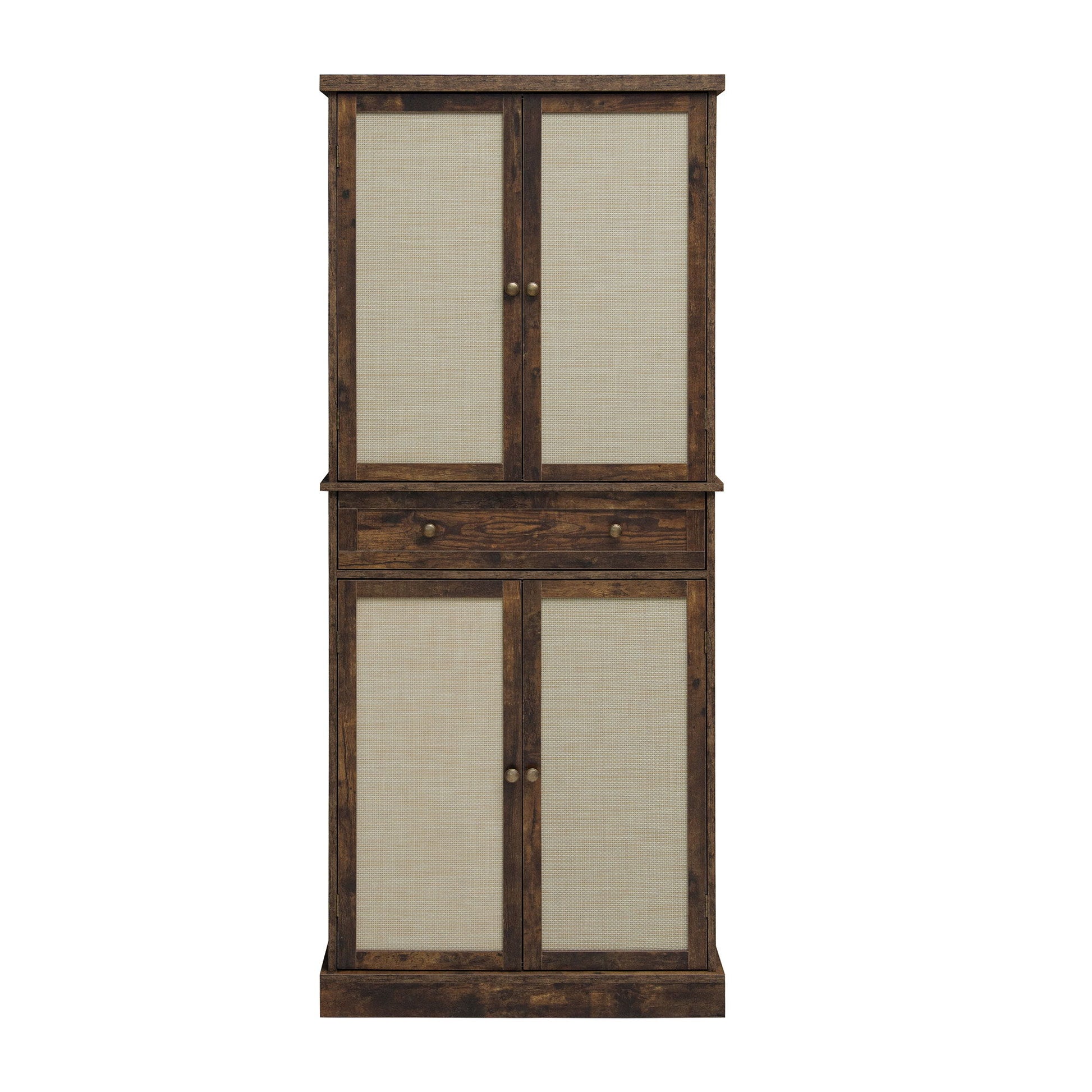 4 Door Cabinet With 1 Drawer, With 4 Adjustable Inner Shelves, Storage Cabinet - Walnut
