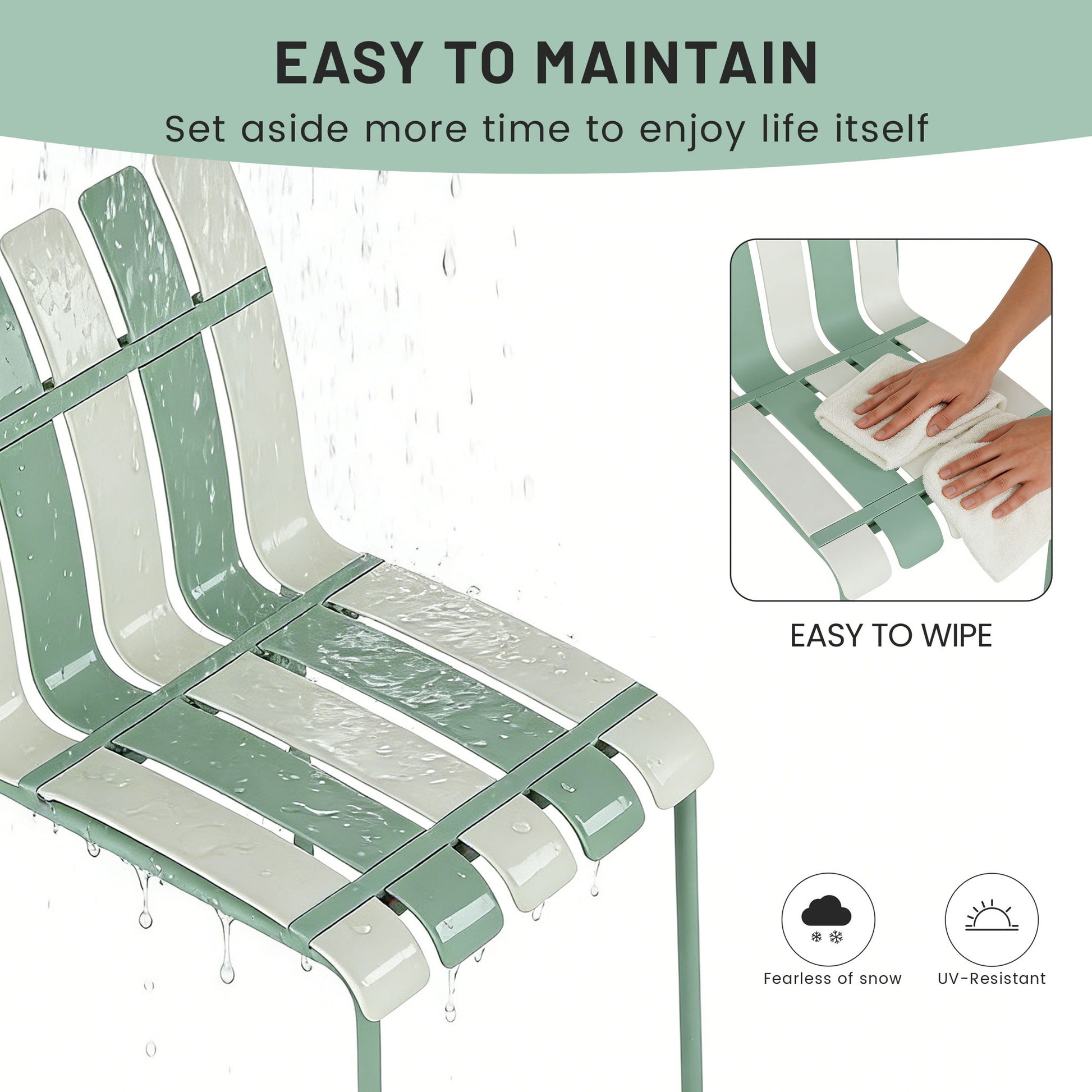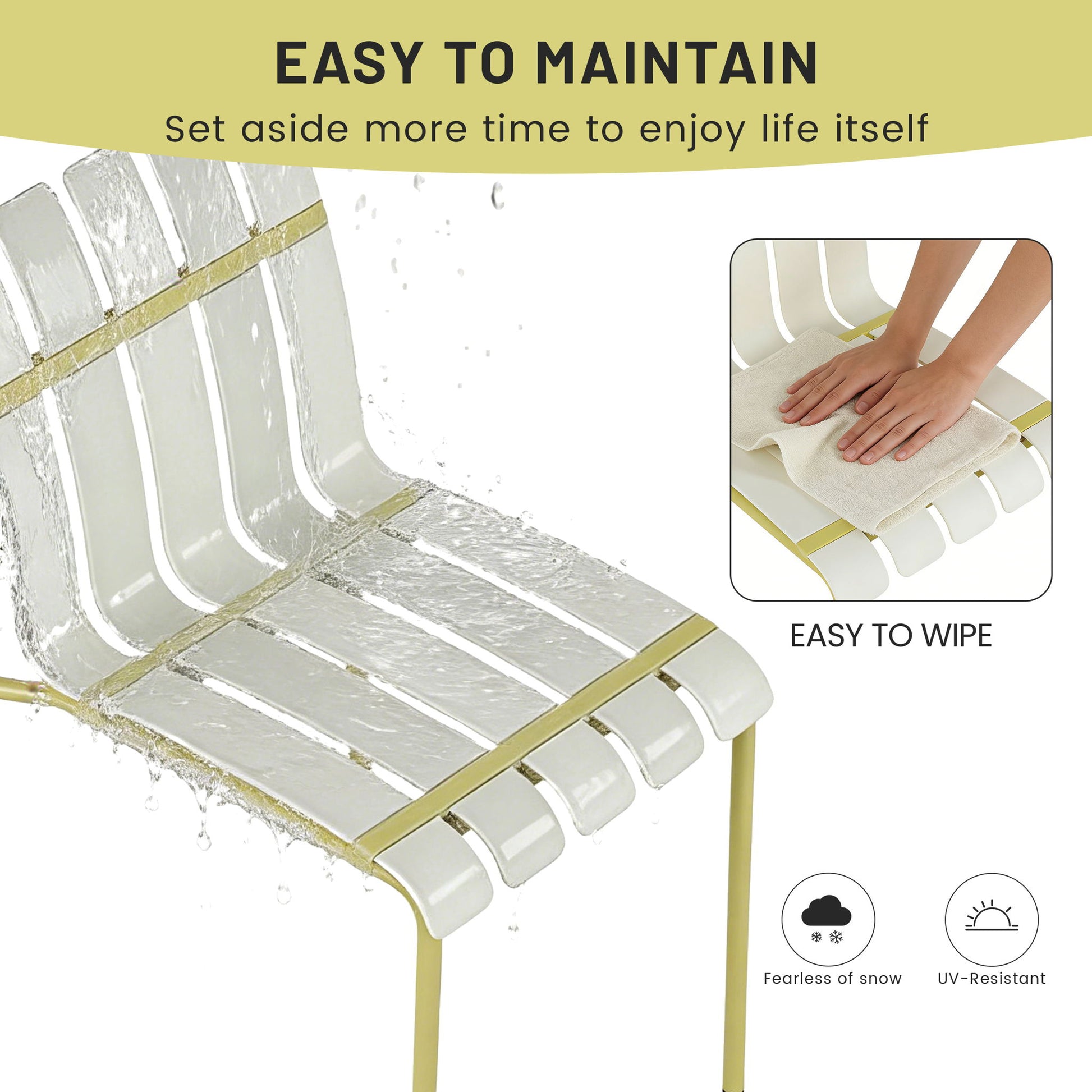 - Durability: Powder-coated metal table/chair legs resist wind, rain, humidity and wont fade. Tabletop & chair body are polypropylene with stain, wear and UV resistance (over 17, 520 outdoor hours).