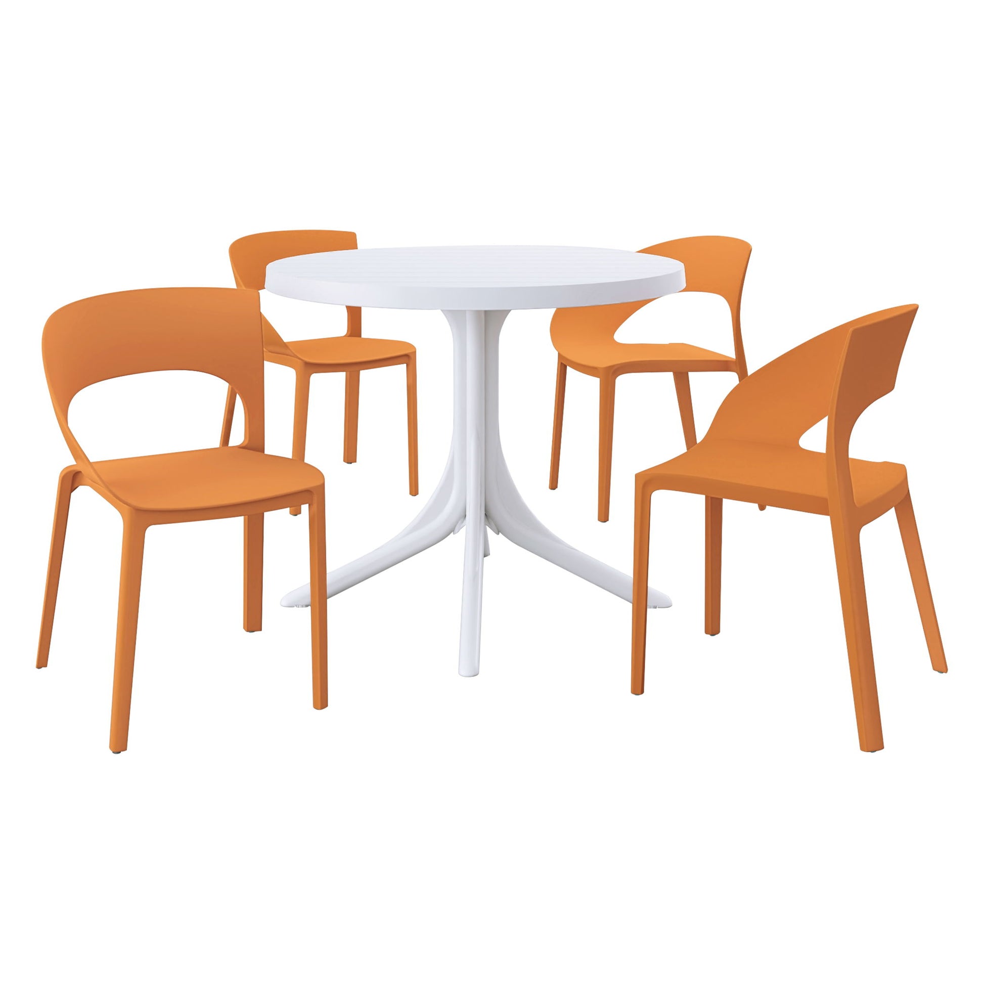 - Durability: Powder-coated metal table legs resist wind, rain and humidity without easy fading. The tabletop and chairs, made of polypropylene, have stain, wear and UV resistance (suitable for over 17, 520 hours of outdoor use).