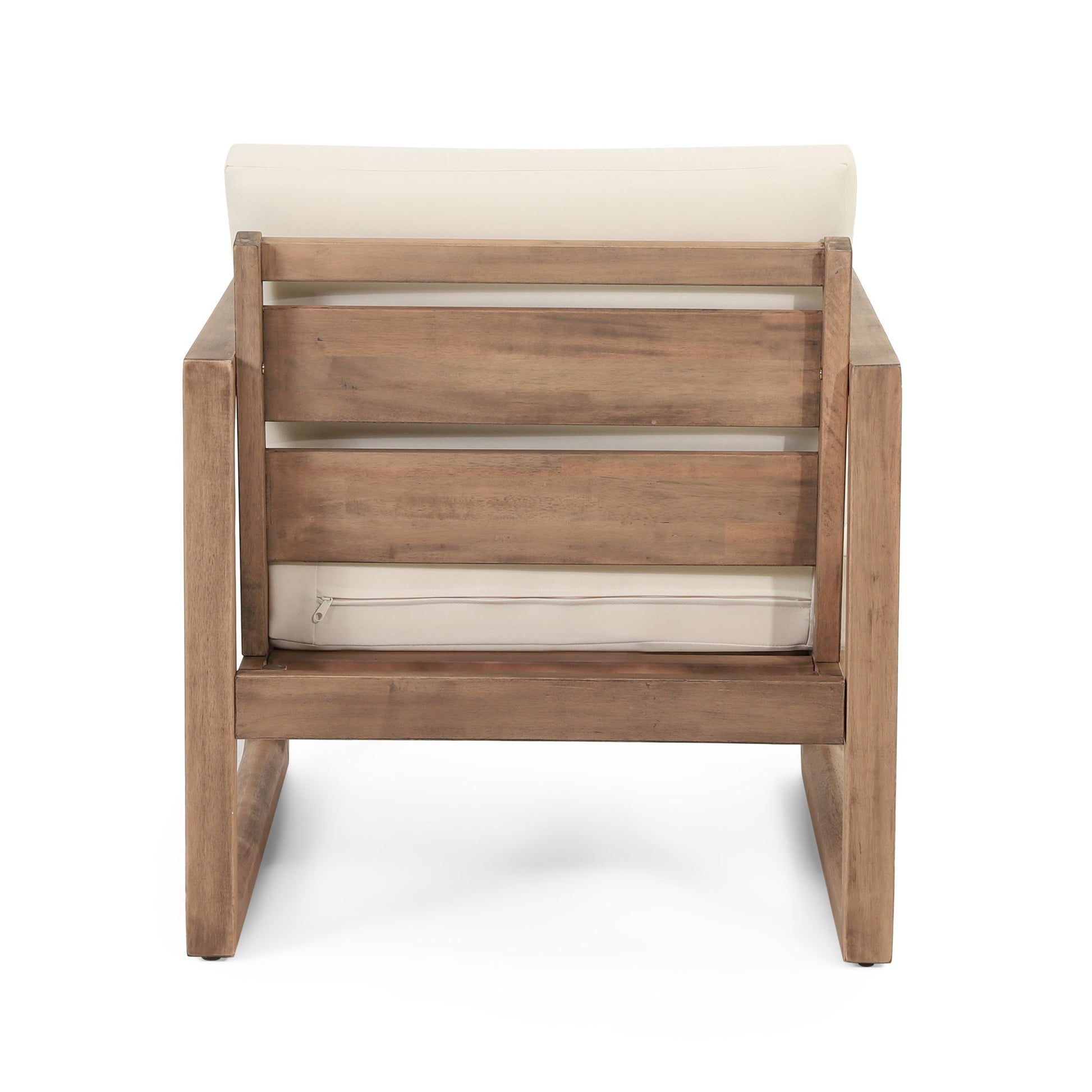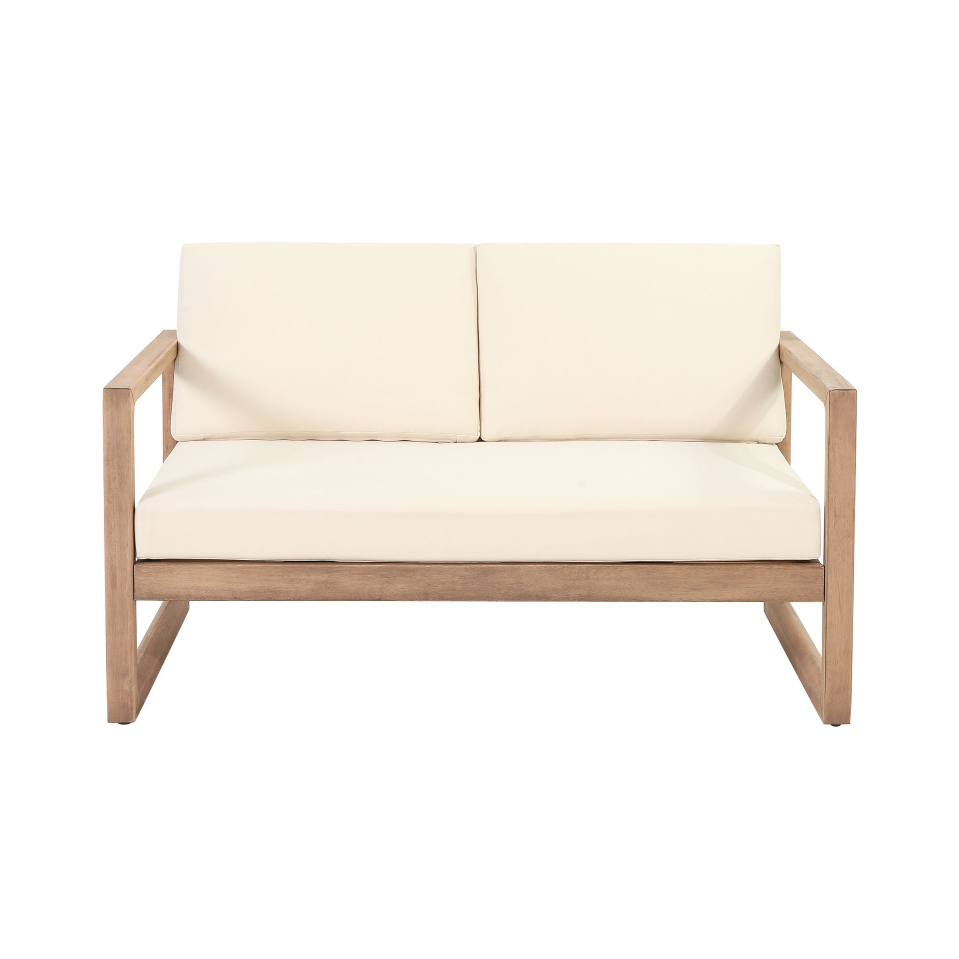 4 Pieces Acacia Wood Patio Furniture Set, Outdoor Furniture With Coffee Table, Patio Conversation Set Deep Seating With Soft Cushion, Porch Chairs For Backyard Porch Balcony - Brown Wash / Beige