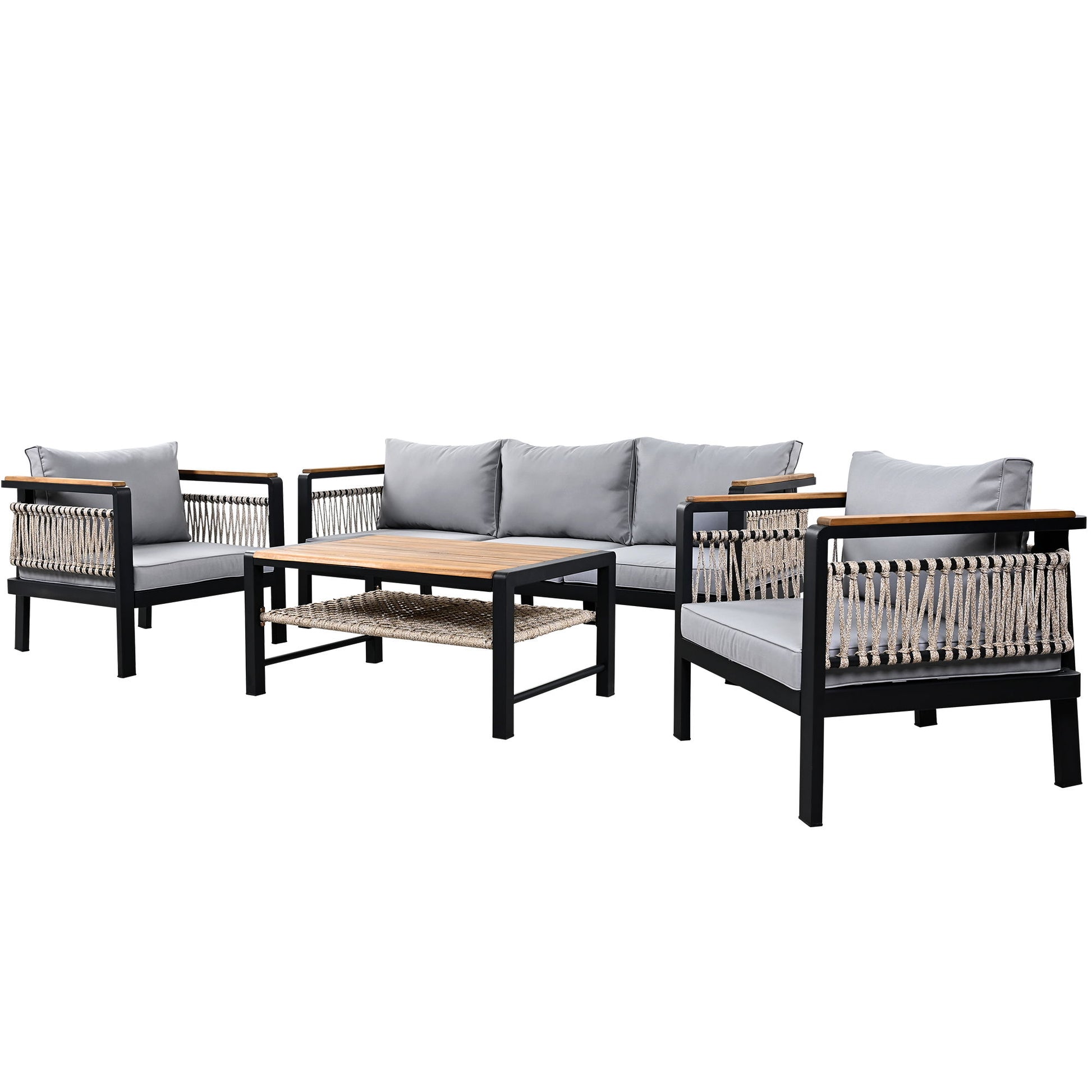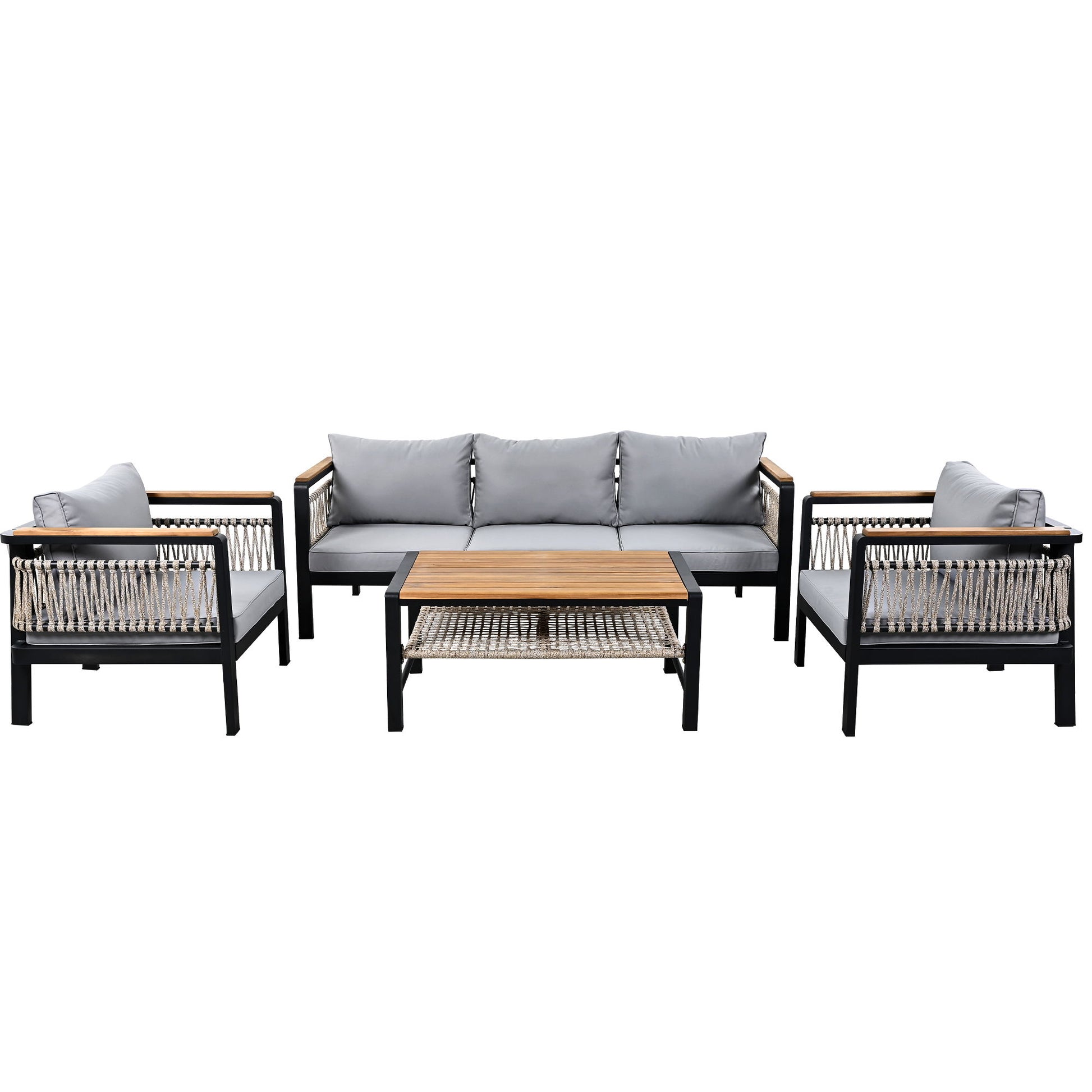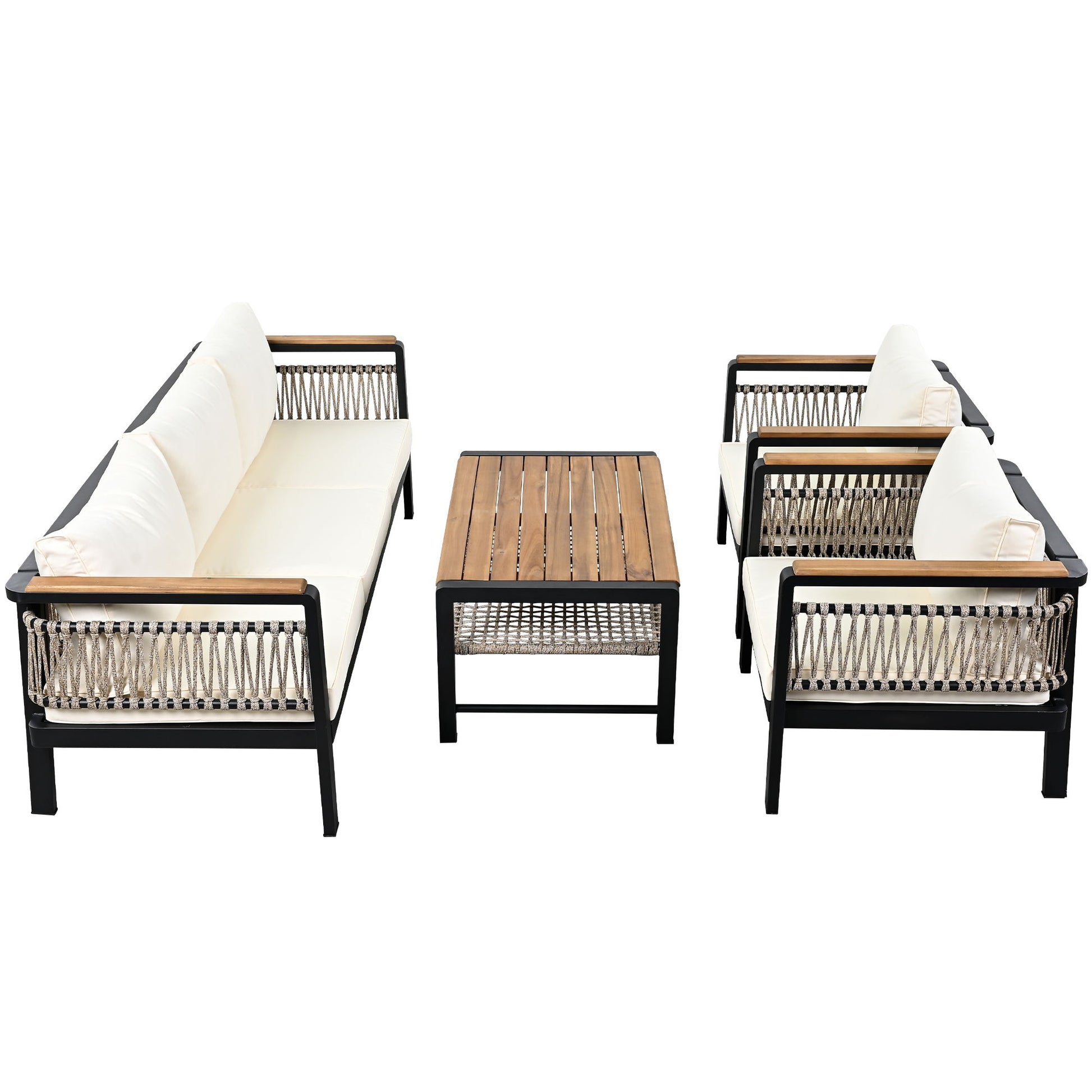 - Stylish Design: Featuring elegant woven rope accents, the sides and back of the sofa set add a contemporary touch. The rope detailing enhances aesthetics while providing additional durability and strength.