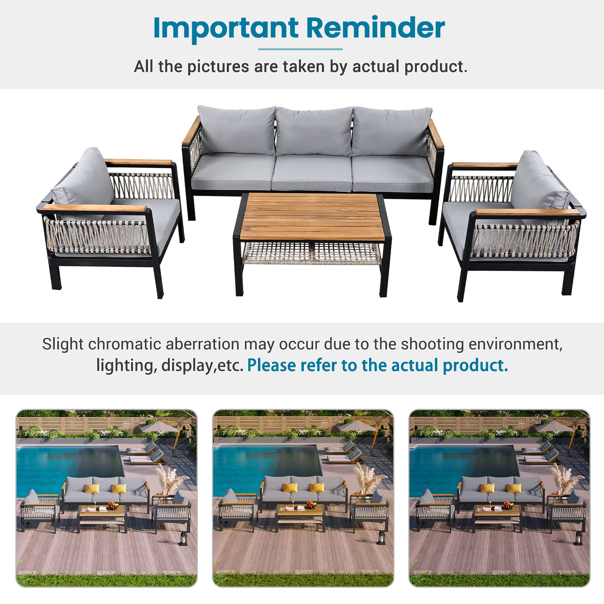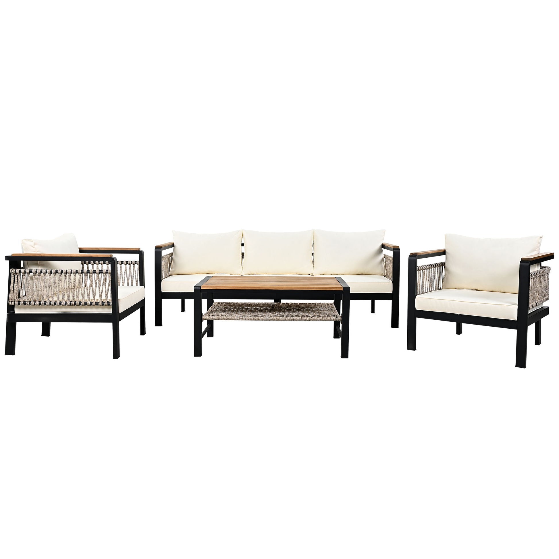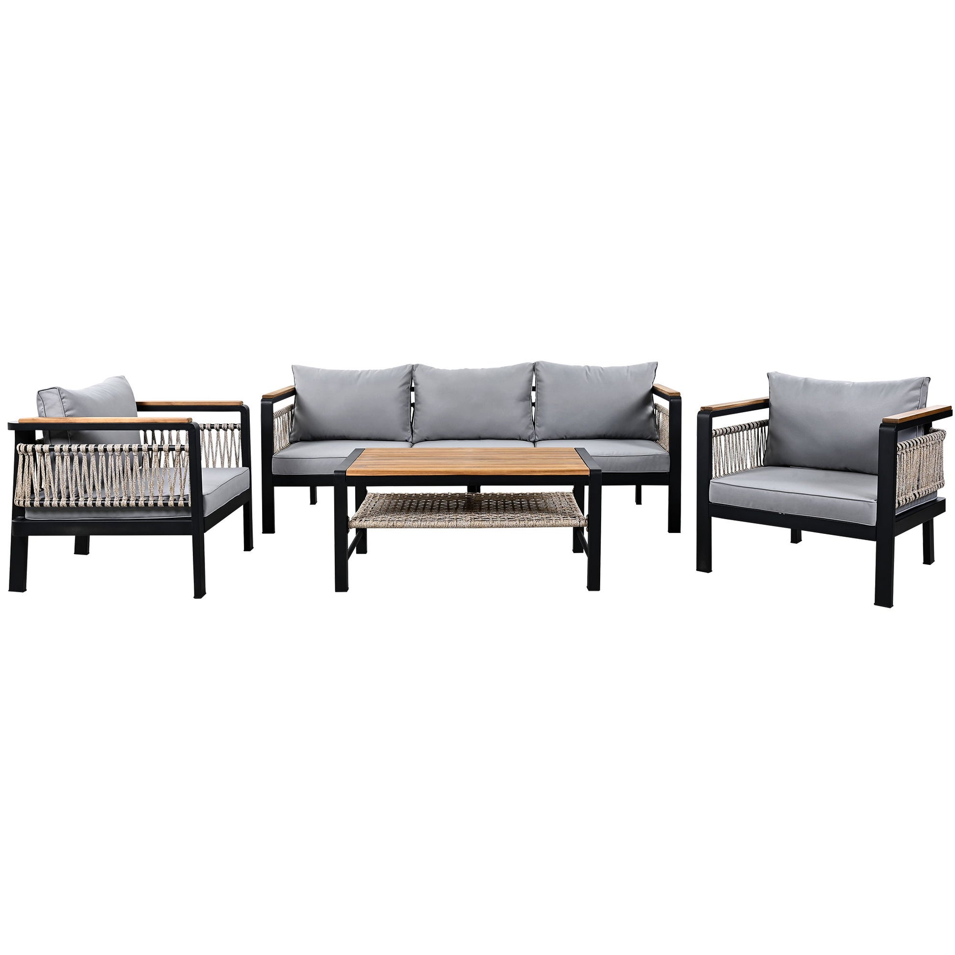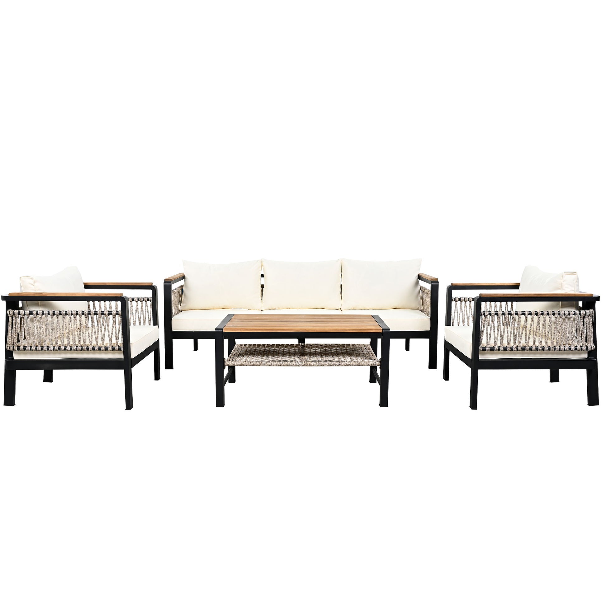 - Stylish Design: Featuring elegant woven rope accents, the sides and back of the sofa set add a contemporary touch. The rope detailing enhances aesthetics while providing additional durability and strength.