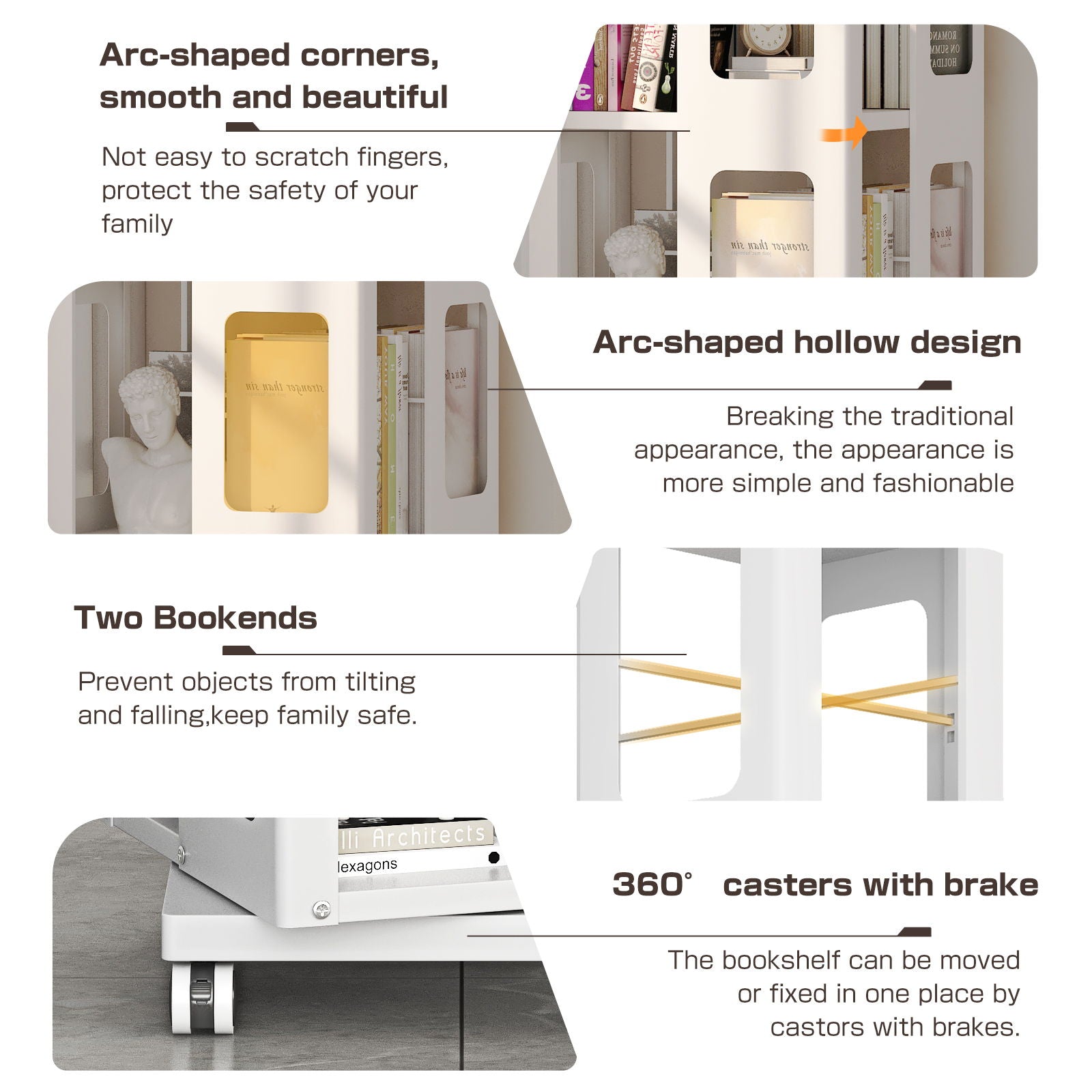- 360° Rotating Bookcase:The rotating bookshelf is equipped with a stainless steel ball turntable, which allows for a complete 360-degree display, showcasing your book collection from all angles, no shaking when rotating.