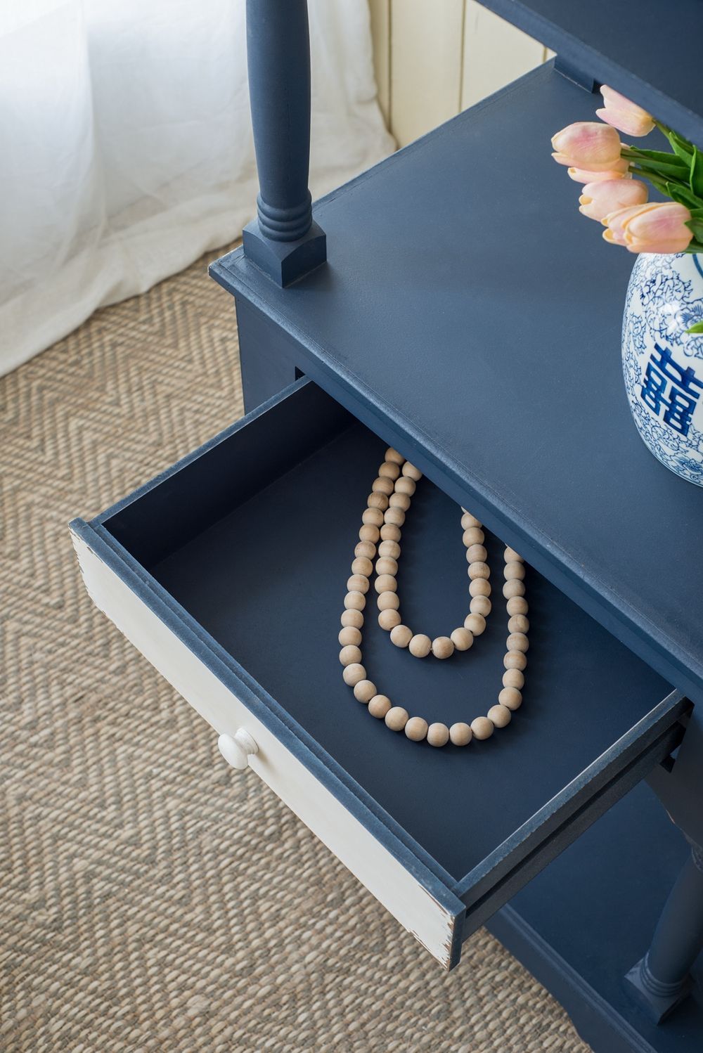 - Elegant Design: Features a unique navy finish, distressed double drawers, and intricate detailing to elevate any room's look and feel.
