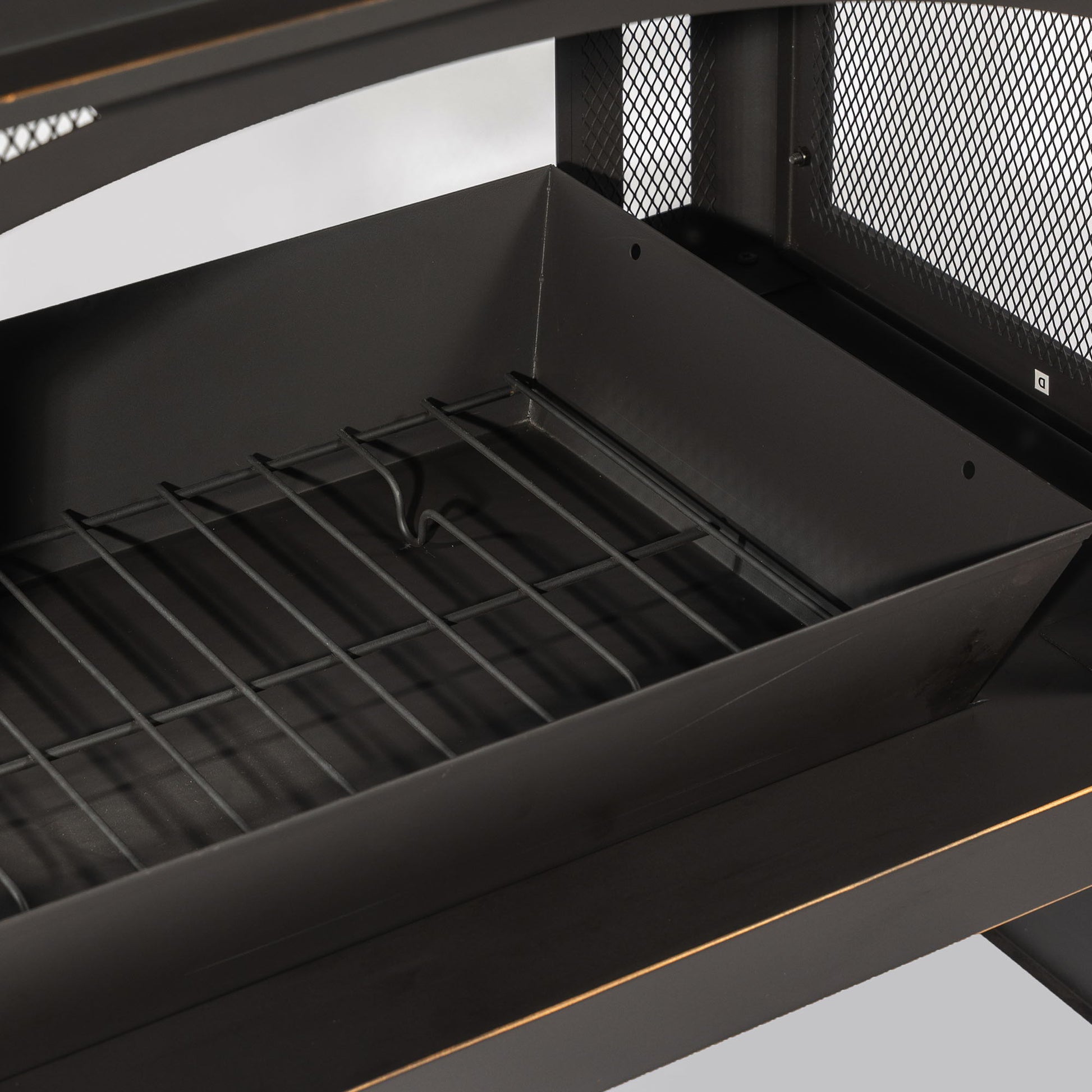 - Handy Convenience: Comes with a fire hook for log adjustment and a weather cover cover for storage. Removable grill and pan let you switch between fireside comfort and outdoor cooking with ease.