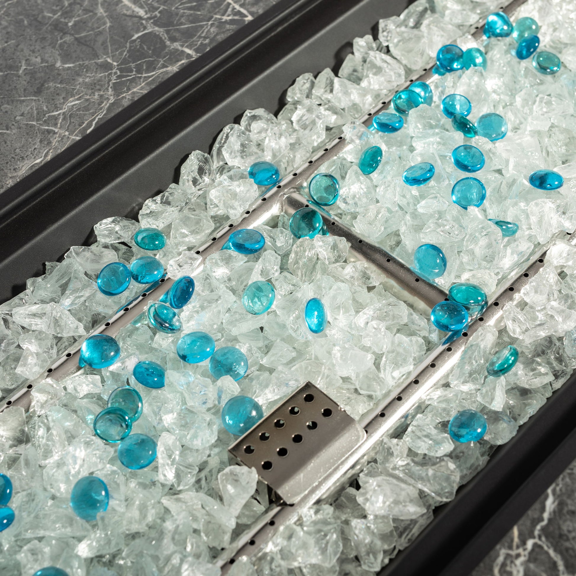 - Windproof flames, timeless ambiance: The tempered glass windscreen ensures steady firelight in any weather. Marble, rattan, and dancing flames create the perfect atmosphere for entertaining or unwinding.